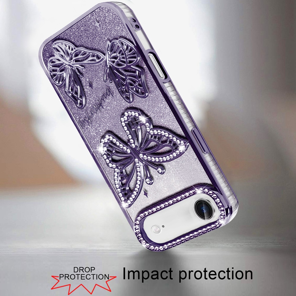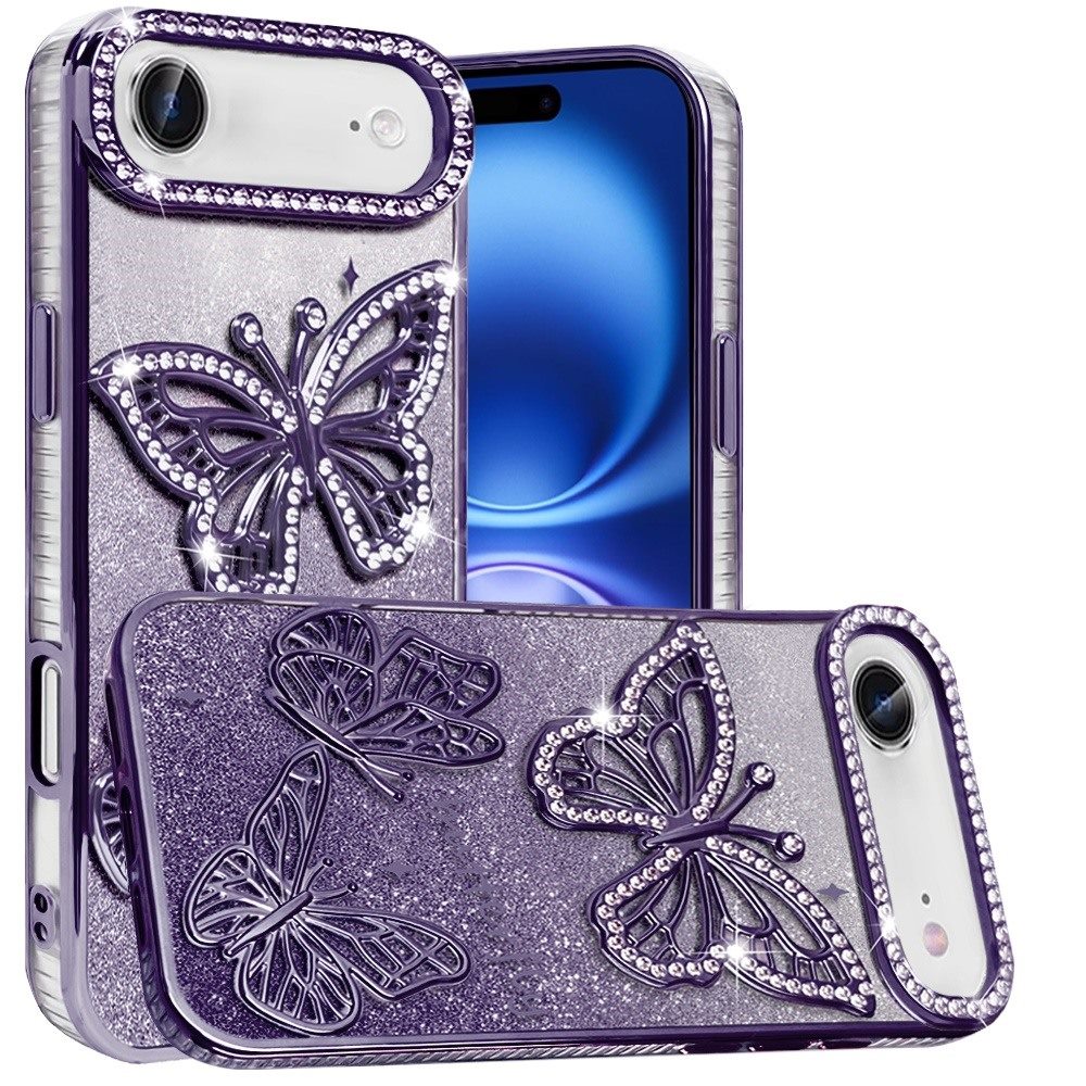 For iPhone 17 Air Butterfly Freedom Shimmer Glitter Thick TPU Case Cover - Purple