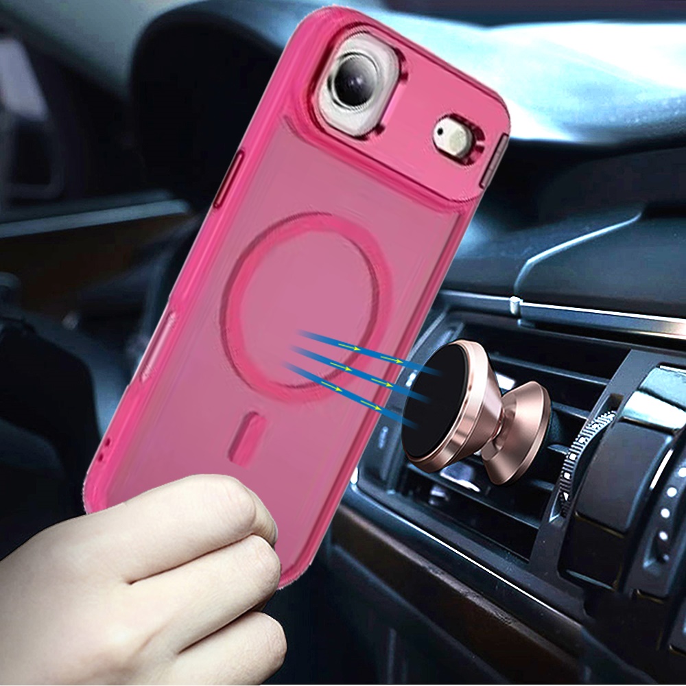 For iPhone 17 Air Fearless Tough HQ Metallic Hybrid with Camera Ring Stand [Magnetic Circle] Case - Hot Pink