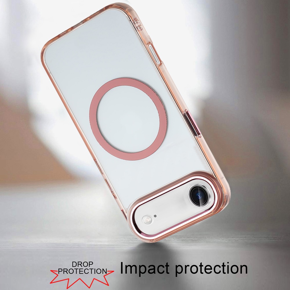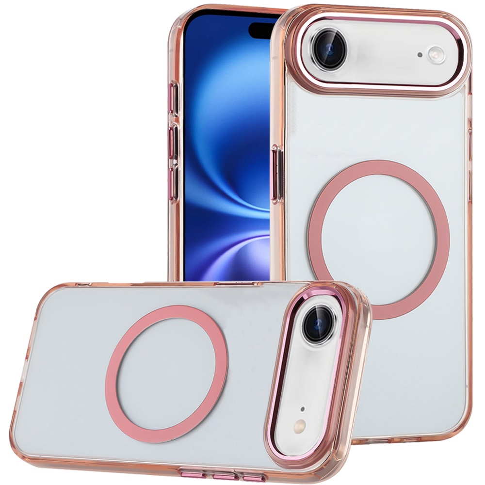 For iPhone 17 Air Magnetic Circle Ring Transparent Premium Acrylic with Metal Buttons & Camera Raised Lip - Rose Gold
