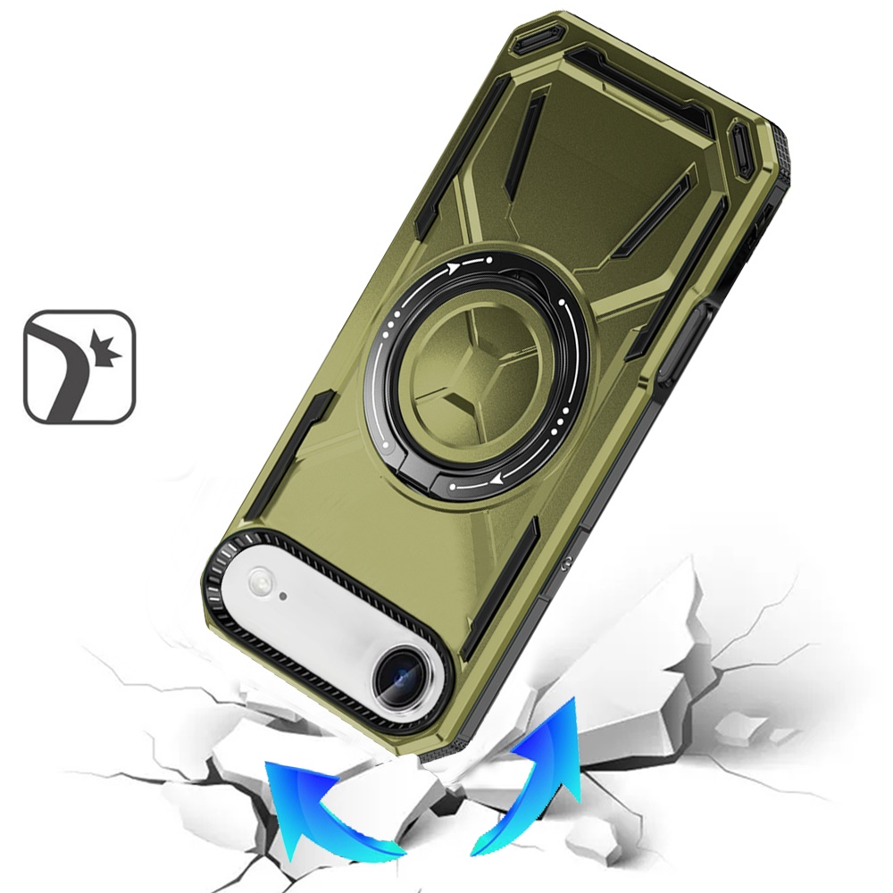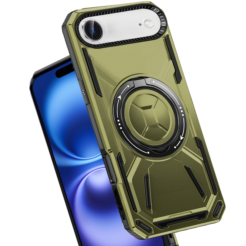 For iPhone 17 Air Loop Hybrid with [Magnetic Ring Circle] 360 degrees Rotational Kickstand Case Cover - Midnight Green