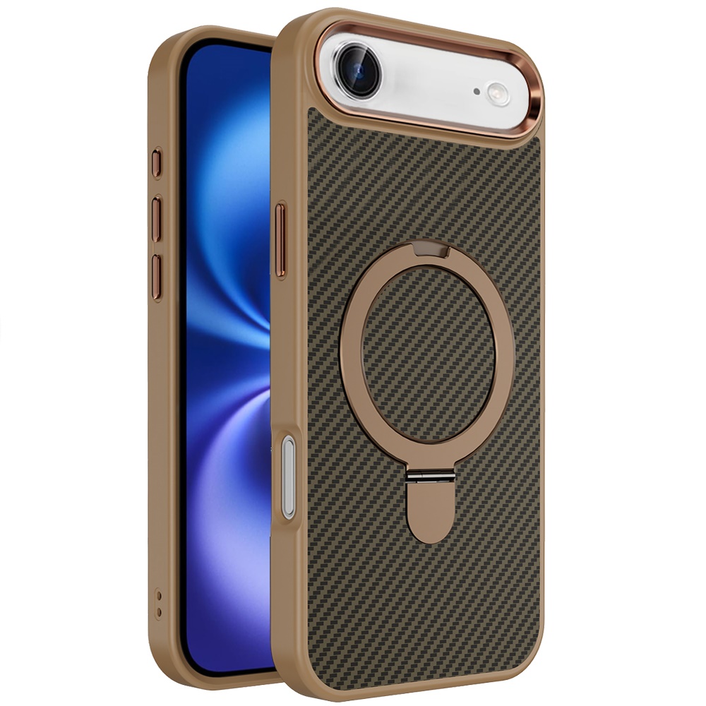 For iPhone 17 Air Carbon Design [Magnetic Circle] with Ring Stand Hybrid Case - Brown