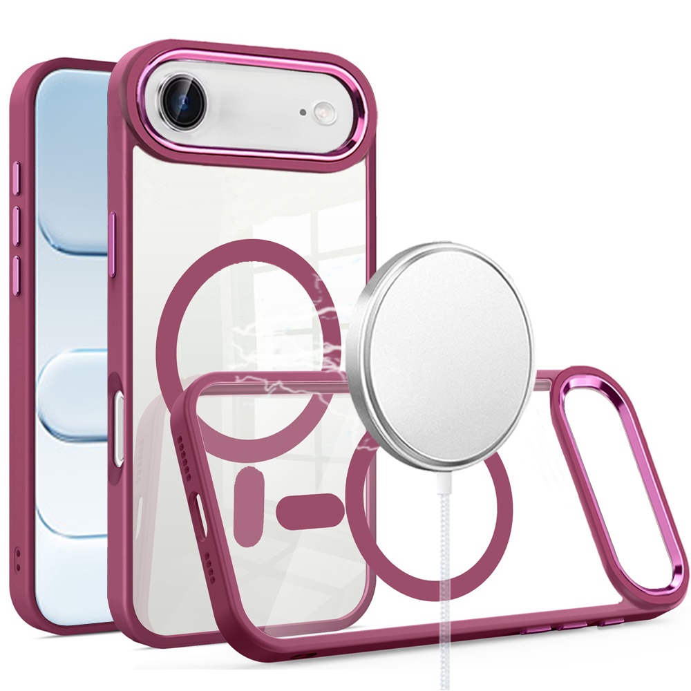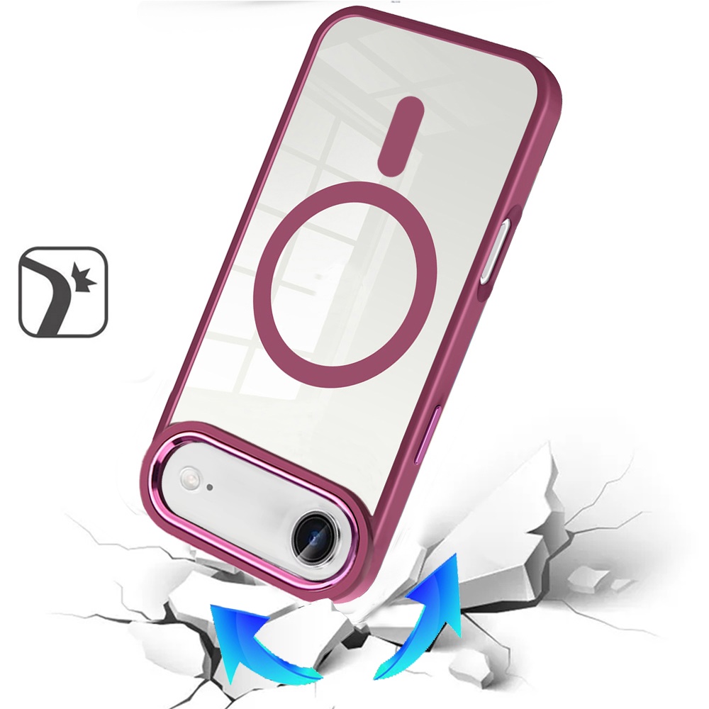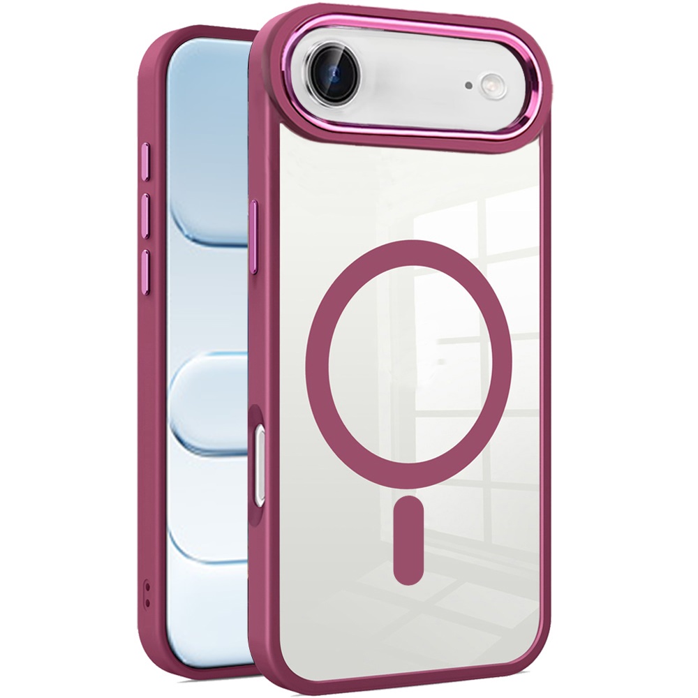 For iPhone 17 Air Greatest Clear Acrylic [Magnetic Circle] ShockProof ToughThick Metal Button Hybrid - Burgundy