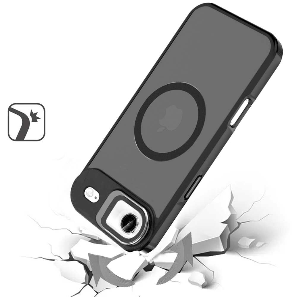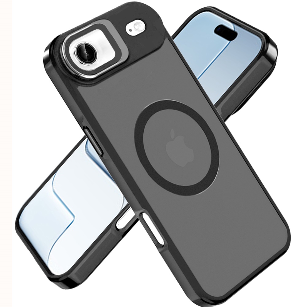 For iPhone 17 Air Frame Aluminium Camera Stand Metallic Buttons [Magnetic Circle] Tough HQ Hybrid Case - Black