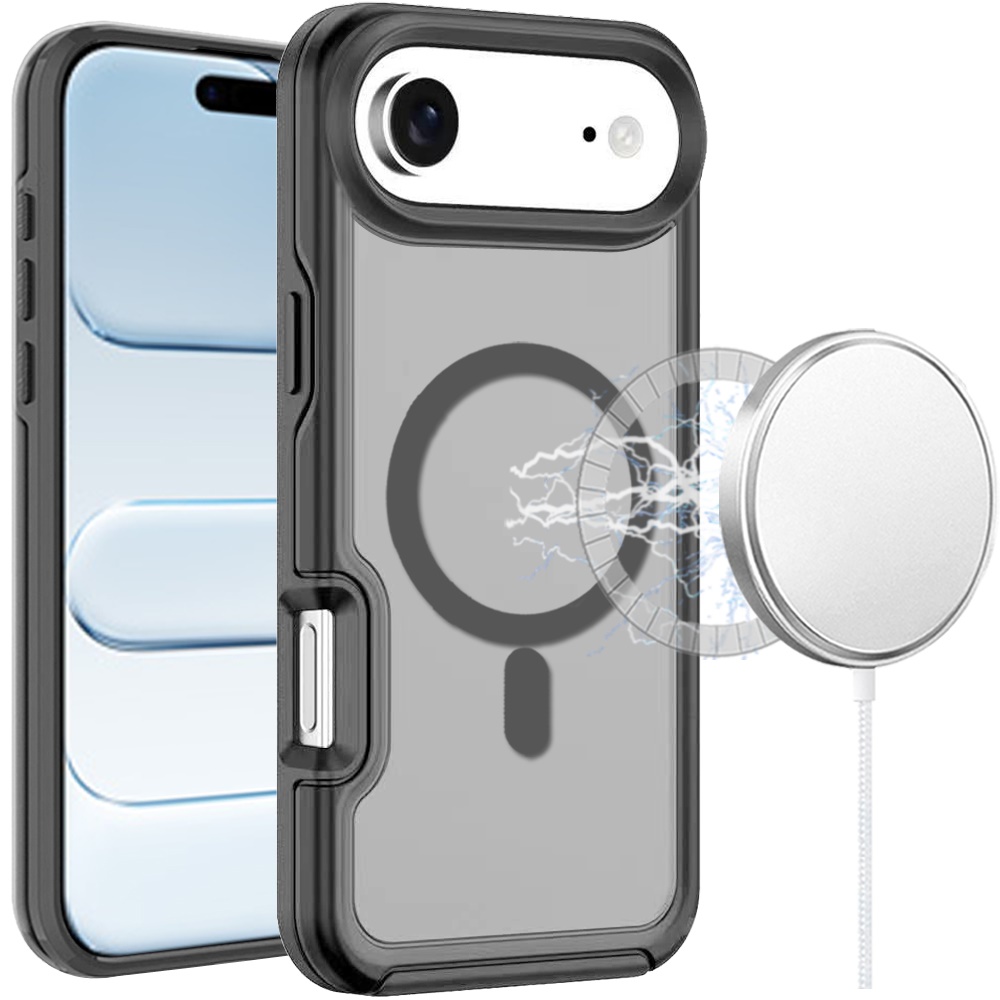 For iPhone 17 Air Glossy Oil Premium Hybrid Case Cover - Black