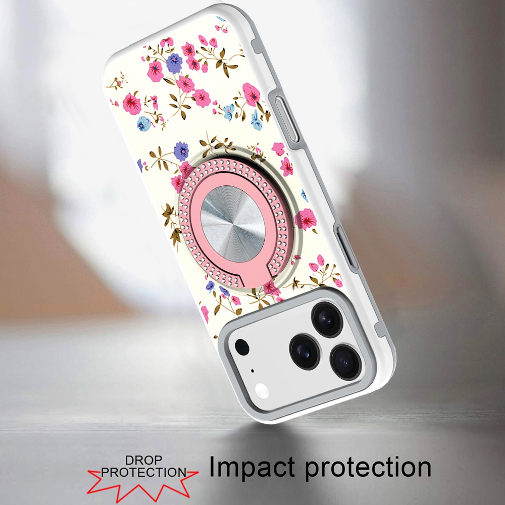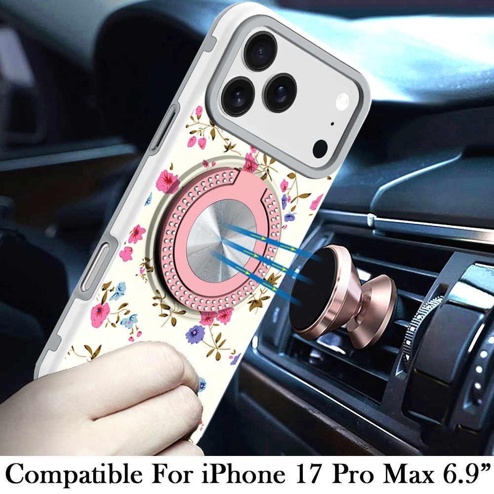 For iPhone 17 Pro Max Metal Diamond CD Pattern Design Matte Finished Hybrid with Rotational Ring [Car Mount Friendly] Case - 8