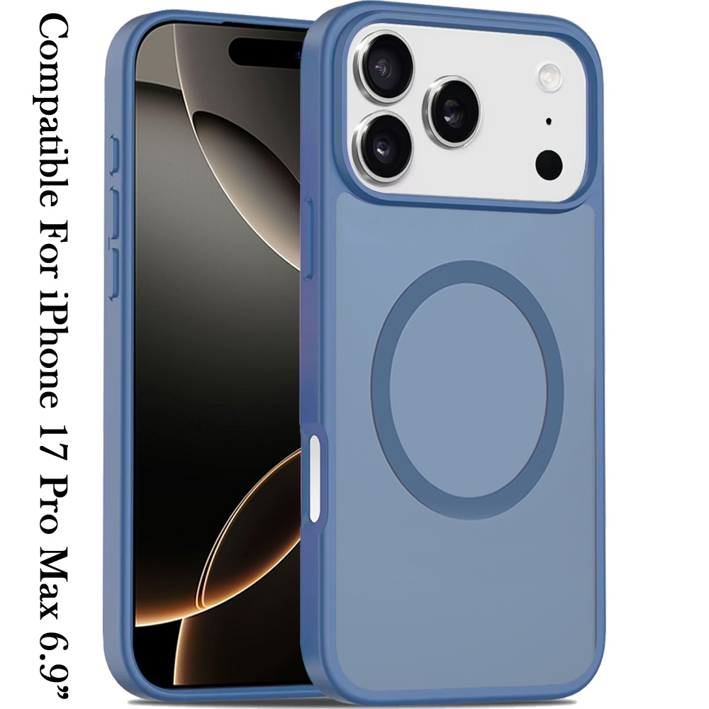 For iPhone 17 Pro Max [Magnetic Circle] Smooth Safe Matte Feel Hybrid Case - Navy Blue