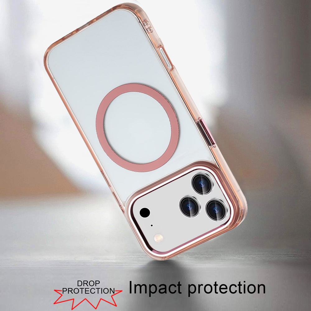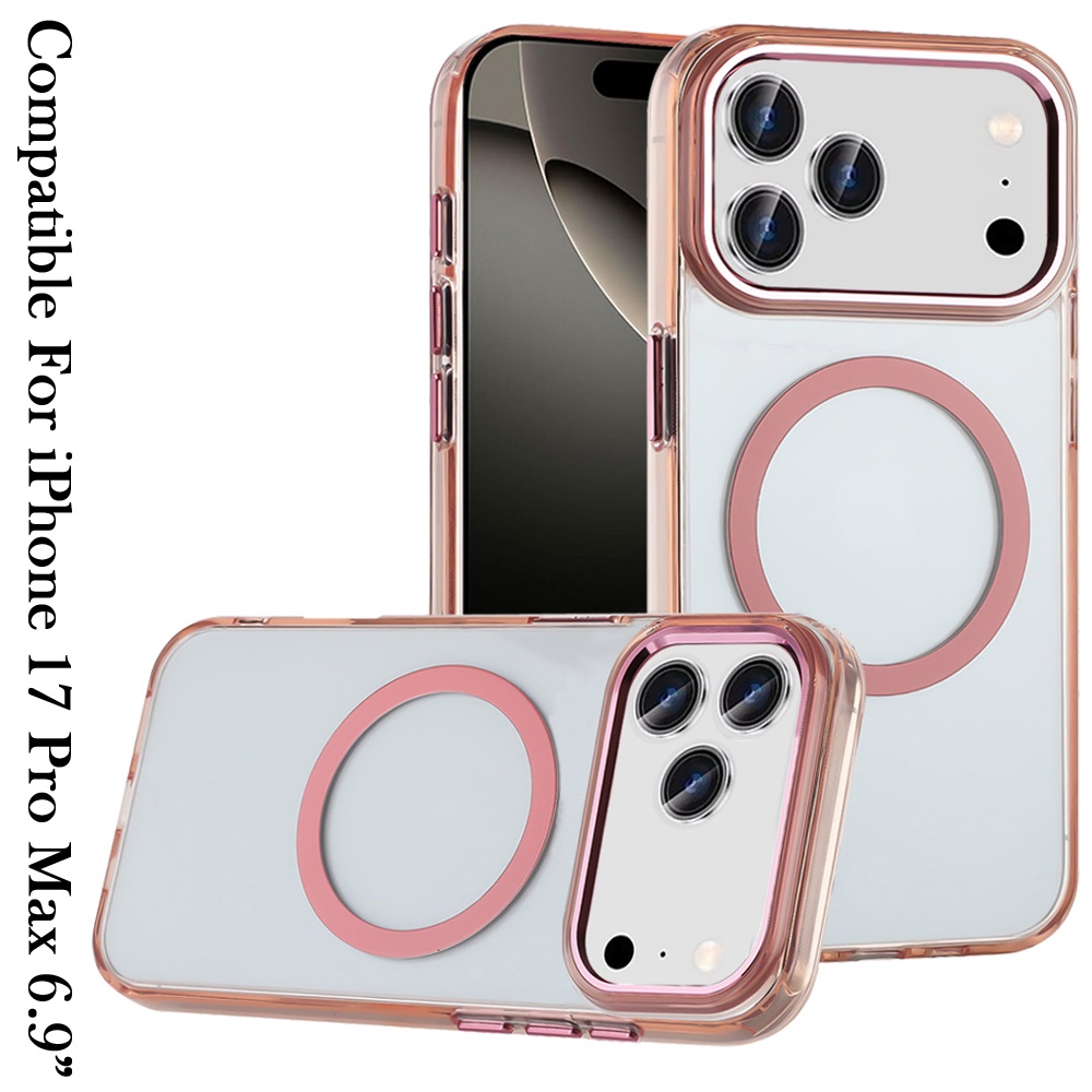 For iPhone 17 Pro Max Magnetic Circle Ring Transparent Premium Acrylic with Metal Buttons & Camera Raised Lip - Rose Gold