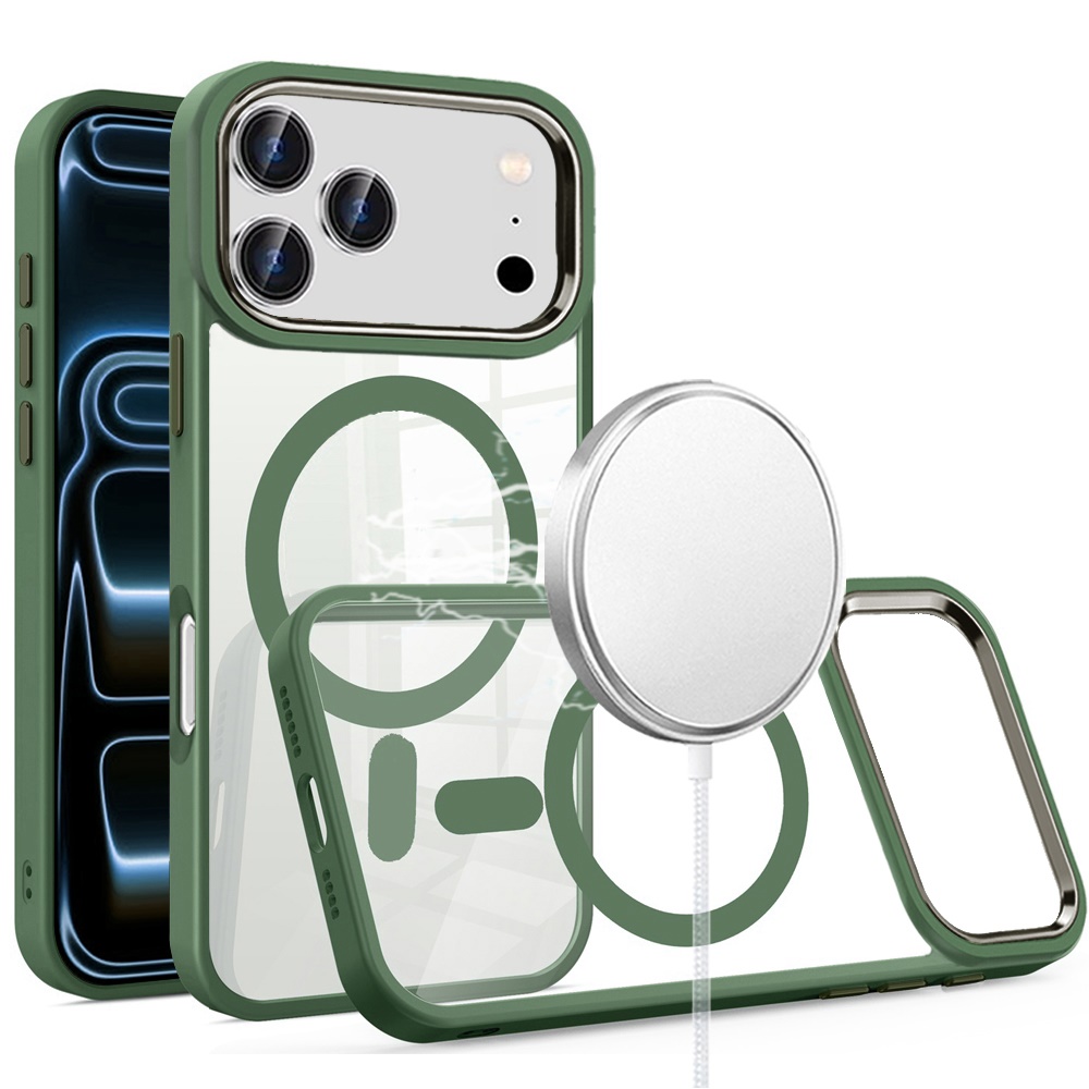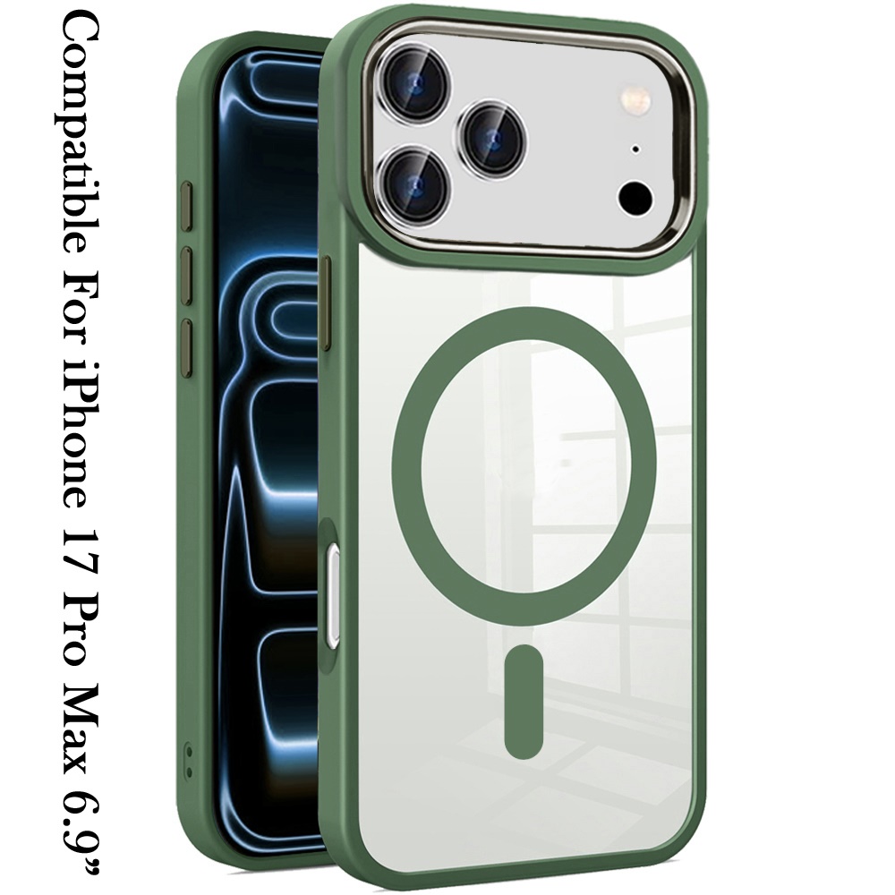 For iPhone 17 Pro Max Greatest Clear Acrylic [Magnetic Circle] ShockProof ToughThick Metal Button Hybrid - Midnight Green