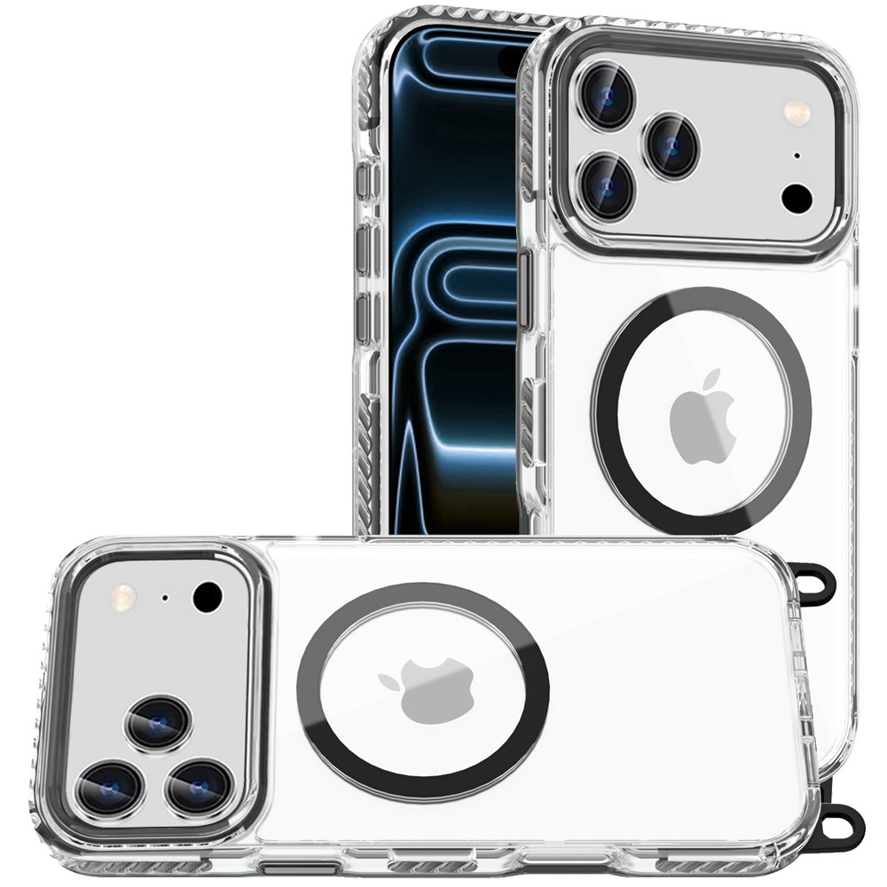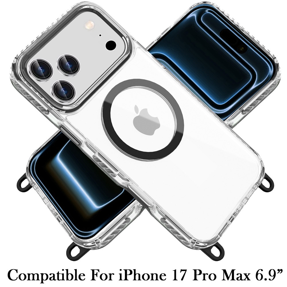 For iPhone 17 Pro Max Transparent HQ Clear Line Design Edged Hybrid [Magnetic Circle] with Matching Lanyard - Black
