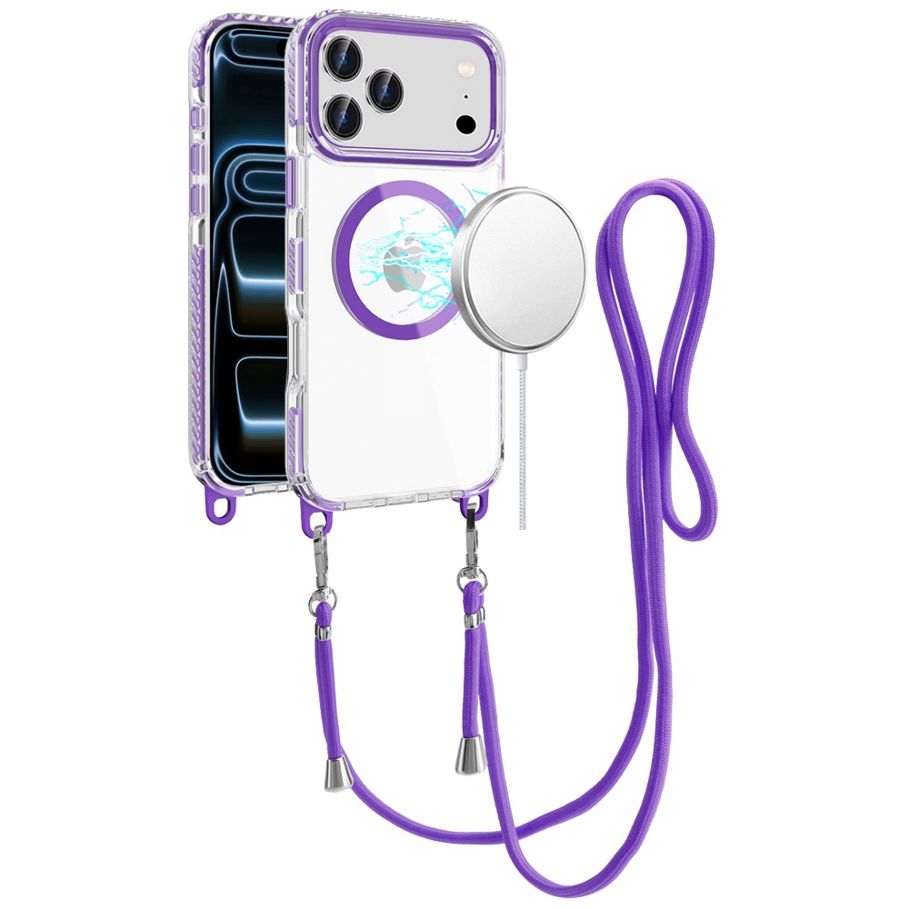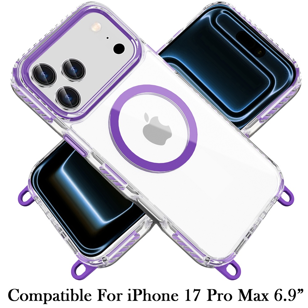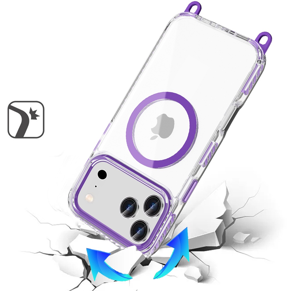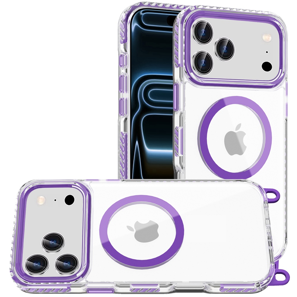 For iPhone 17 Pro Max Transparent HQ Clear Line Design Edged Hybrid [Magnetic Circle] with Matching Lanyard - Dark Purple