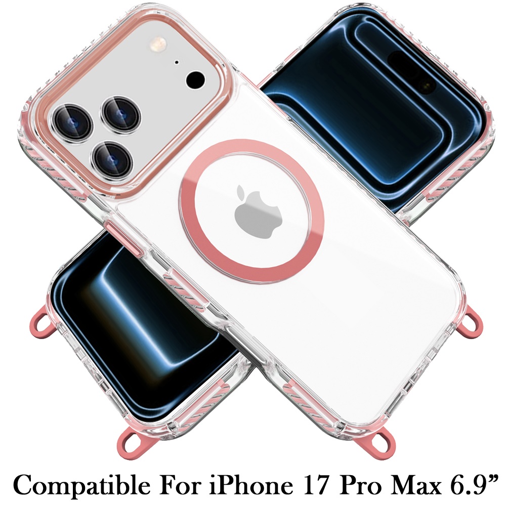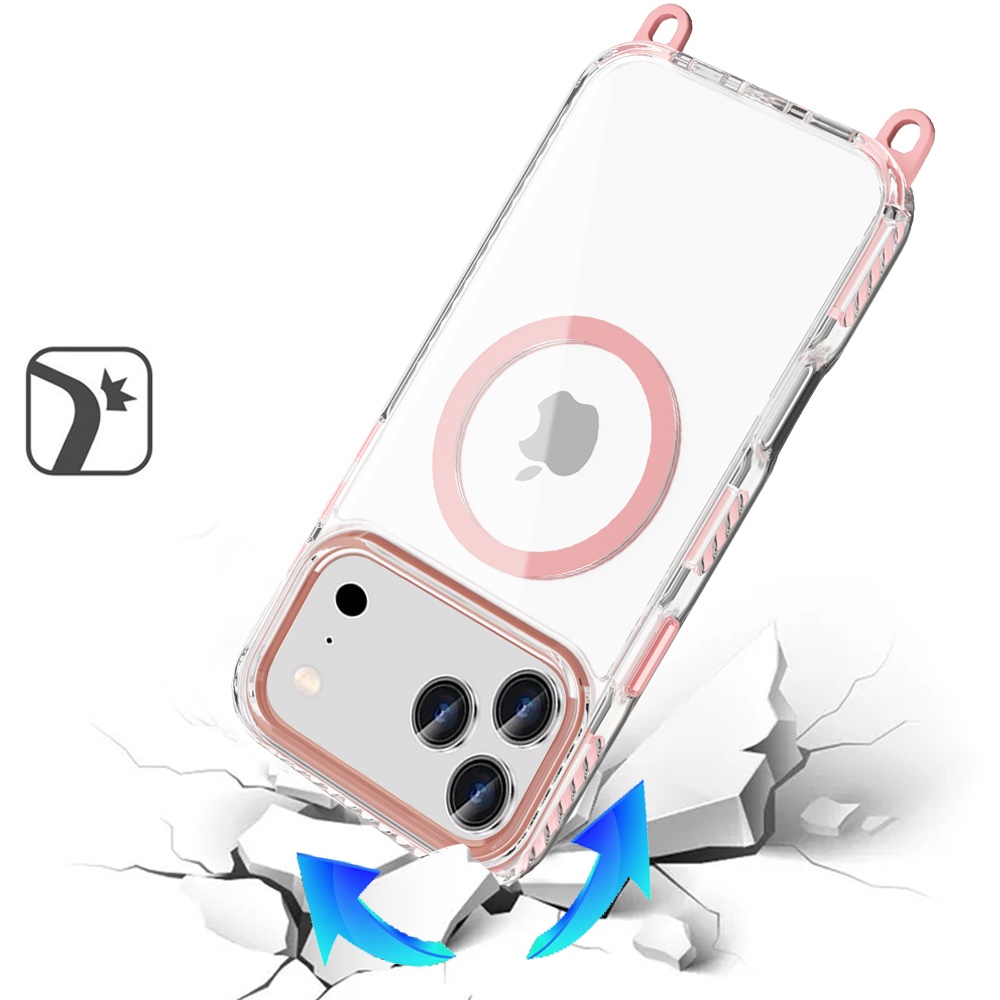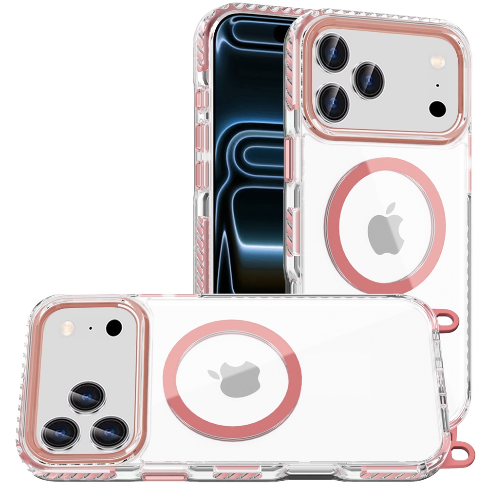 For iPhone 17 Pro Max Transparent HQ Clear Line Design Edged Hybrid [Magnetic Circle] with Matching Lanyard - Light Pink