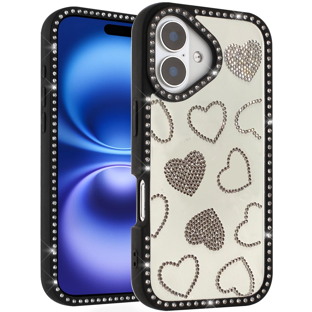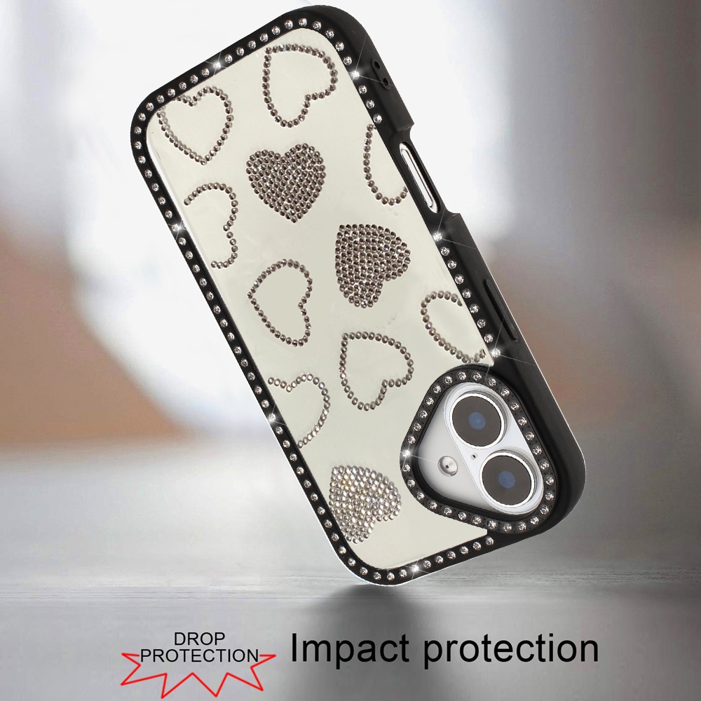 For iPhone 17 Spread Love Glitter Shimmer Diamond Edged Hybrid Case - Black