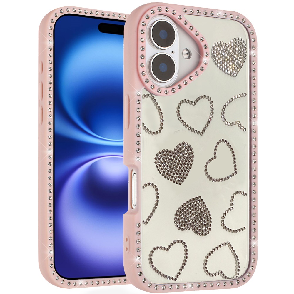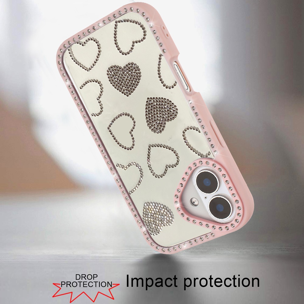 For iPhone 17 Spread Love Glitter Shimmer Diamond Edged Hybrid Case - Pink