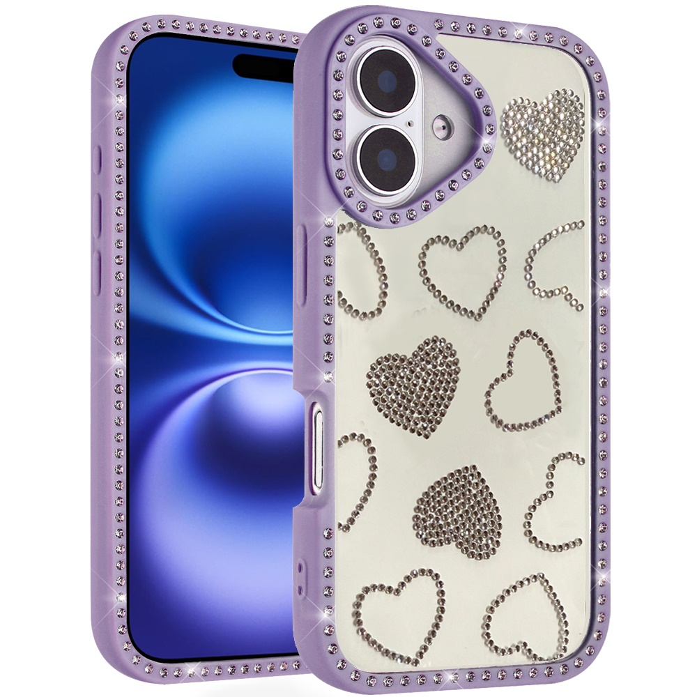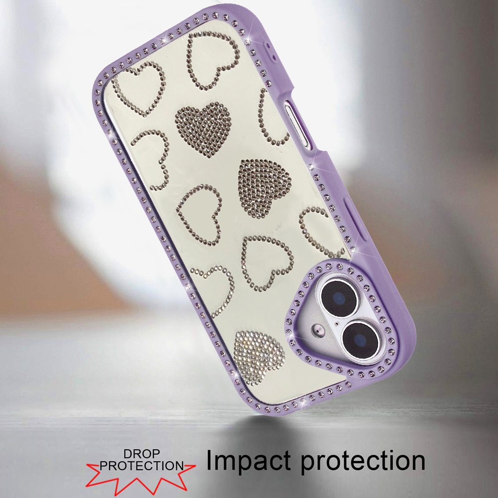 For iPhone 17 Spread Love Glitter Shimmer Diamond Edged Hybrid Case - Purple