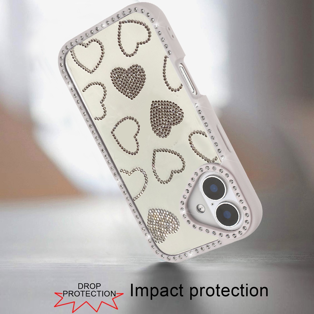 For iPhone 17 Spread Love Glitter Shimmer Diamond Edged Hybrid Case - Beige