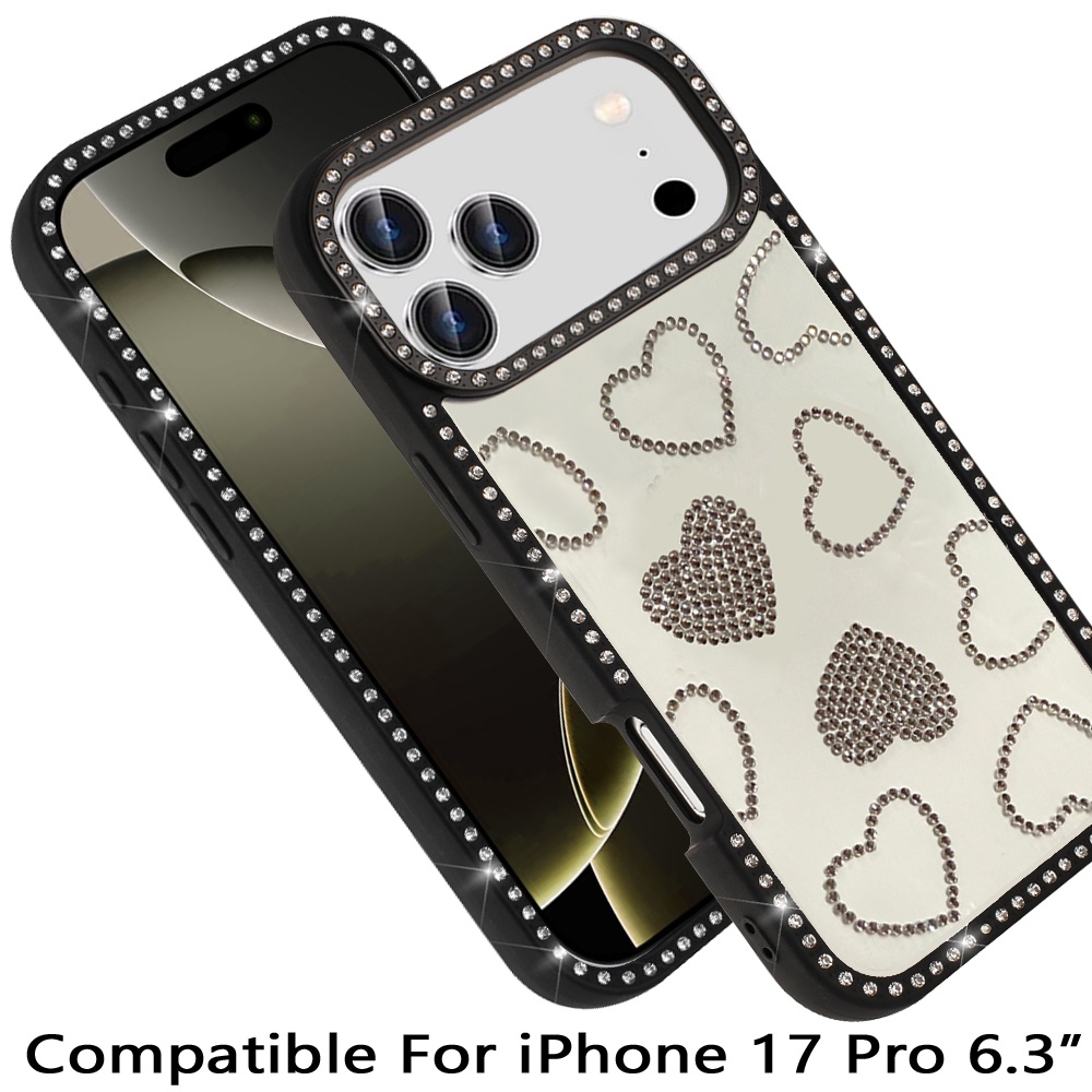 For iPhone 17 Pro Spread Love Glitter Shimmer Diamond Edged Hybrid Case - Black