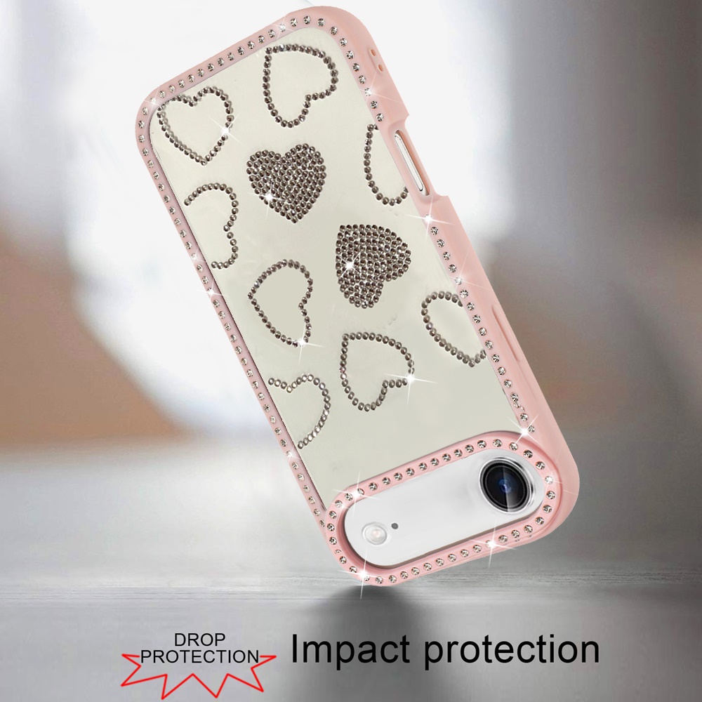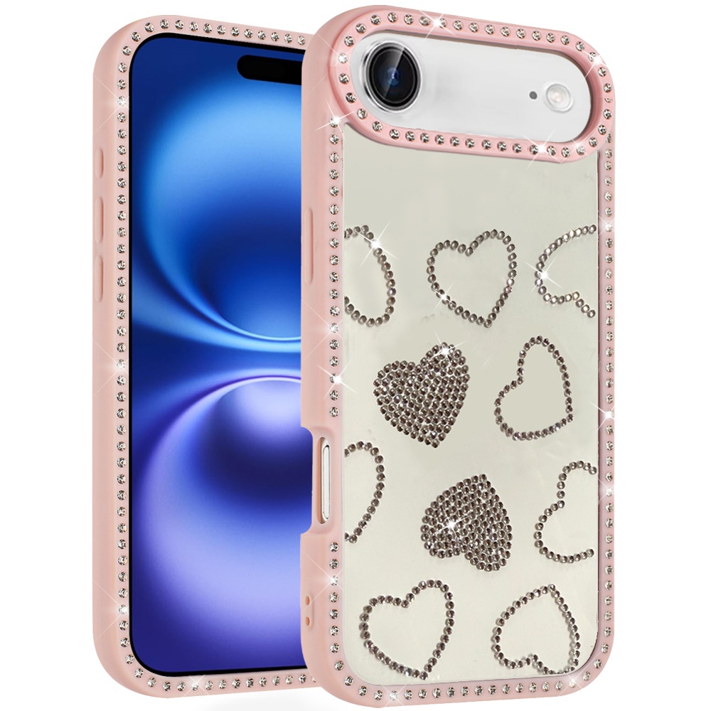 For iPhone 17 Air Spread Love Glitter Shimmer Diamond Edged Hybrid Case - Pink