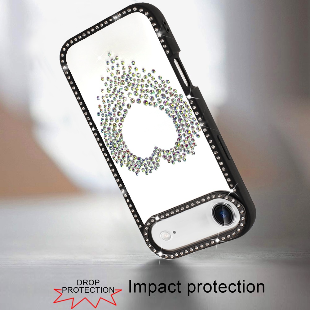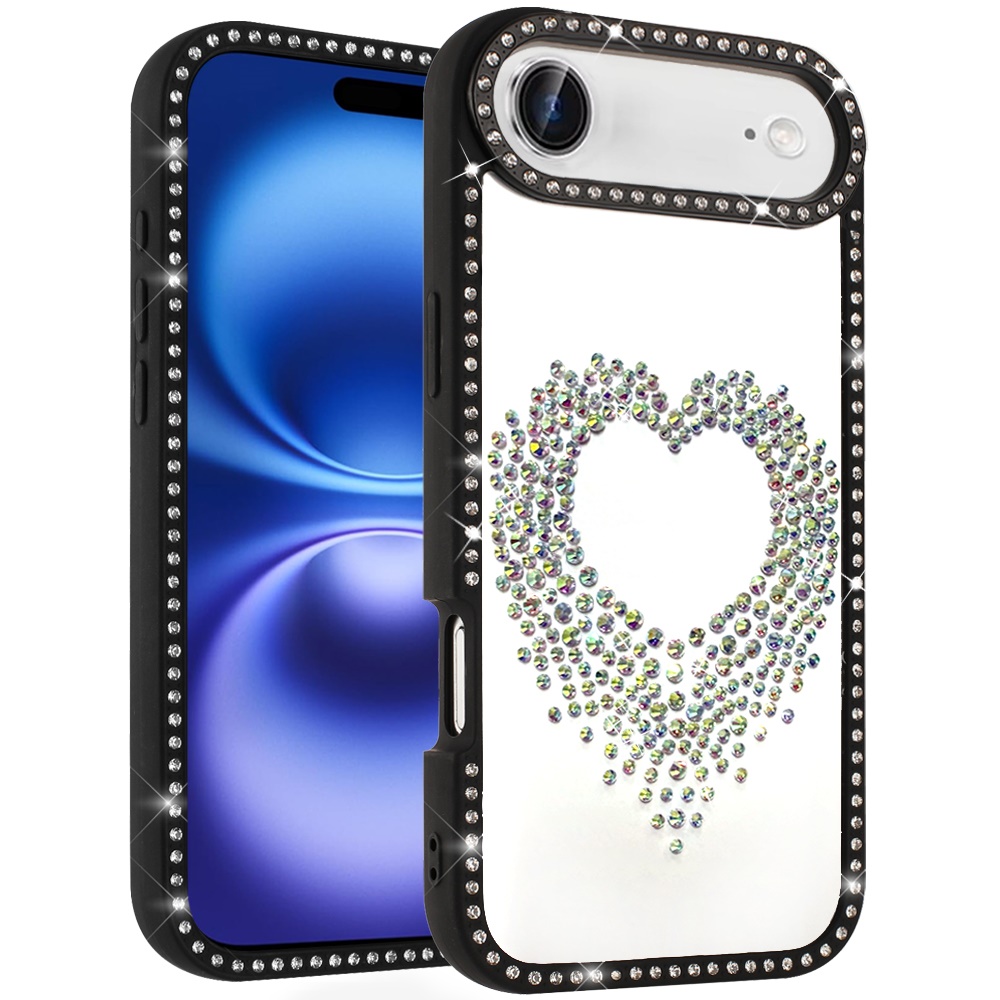 For iPhone 17 Air Beautiful ANGEL Hearts Glitter Shimmer Diamond Edged Hybrid Case - Black