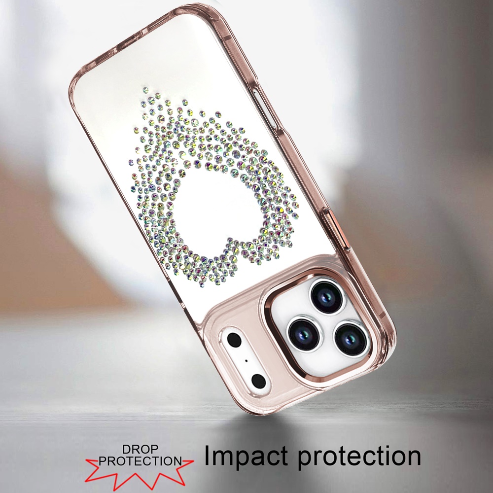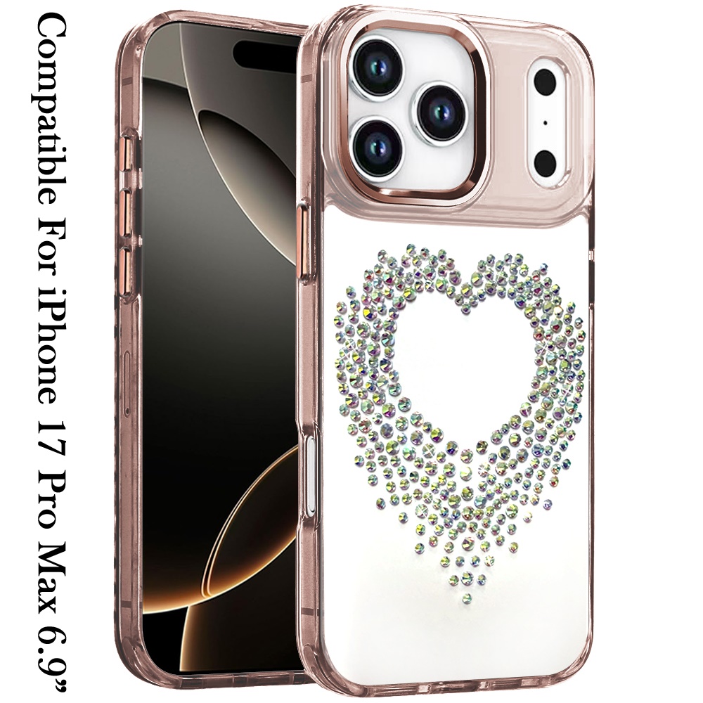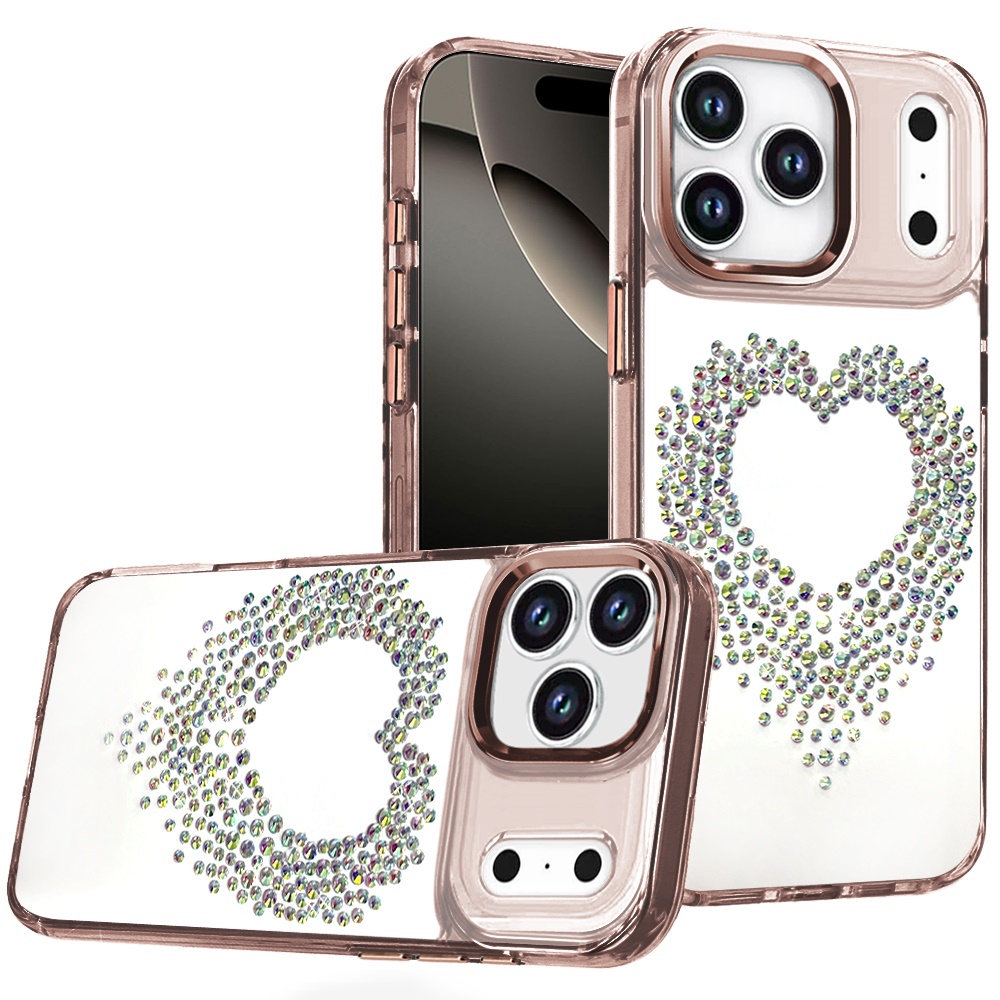 For iPhone 17 Pro Max Angel Hearts Bling Shimmer Colorful Glitter Chrome Edged Hybrid Case - Rose Gold