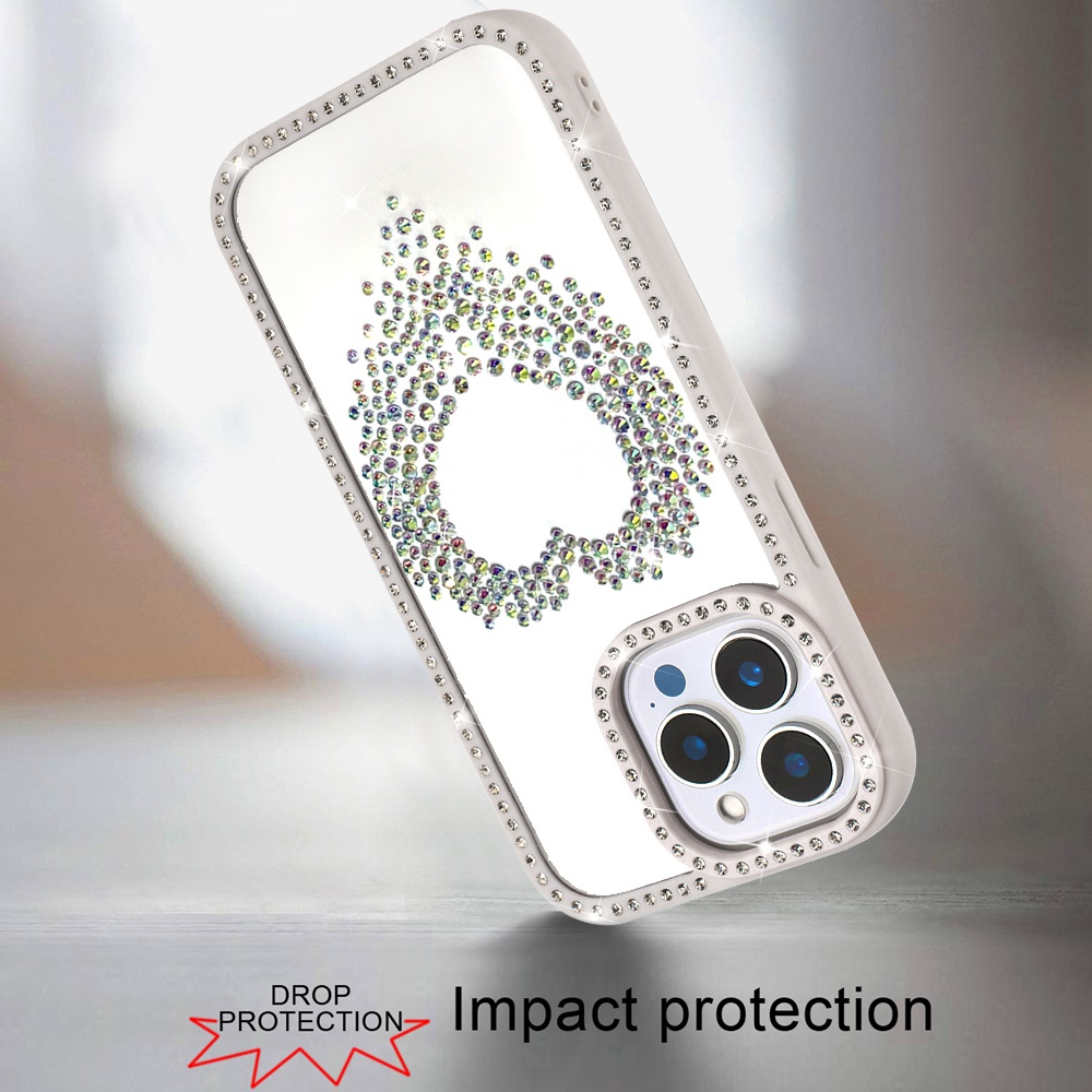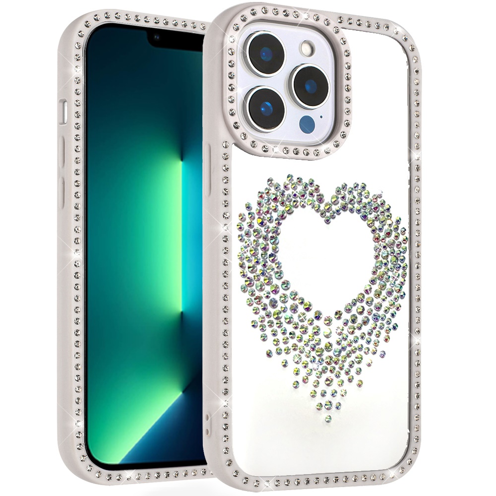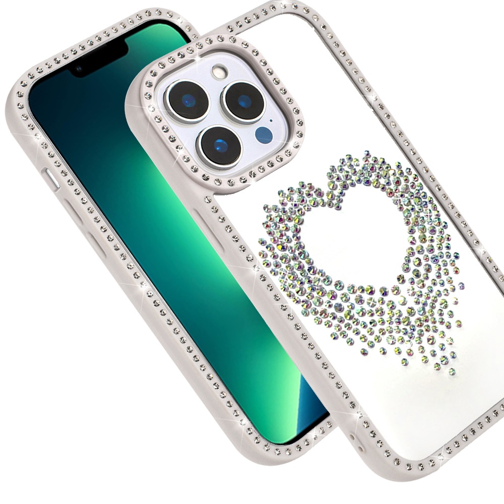 For iPhone 13 Pro Max Beautiful ANGEL Hearts Glitter Shimmer Diamond Edged Hybrid Case - Beige