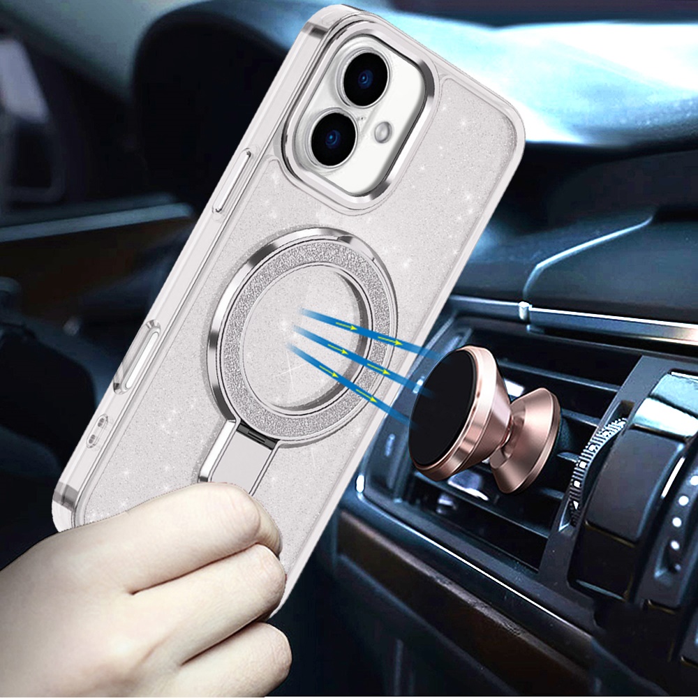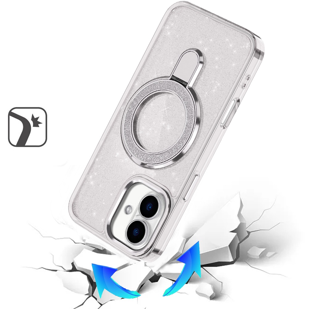 For iPhone 17 Transparent Glitter Rotaional Magnetic Ring Stand HQ Hybrid - Clear