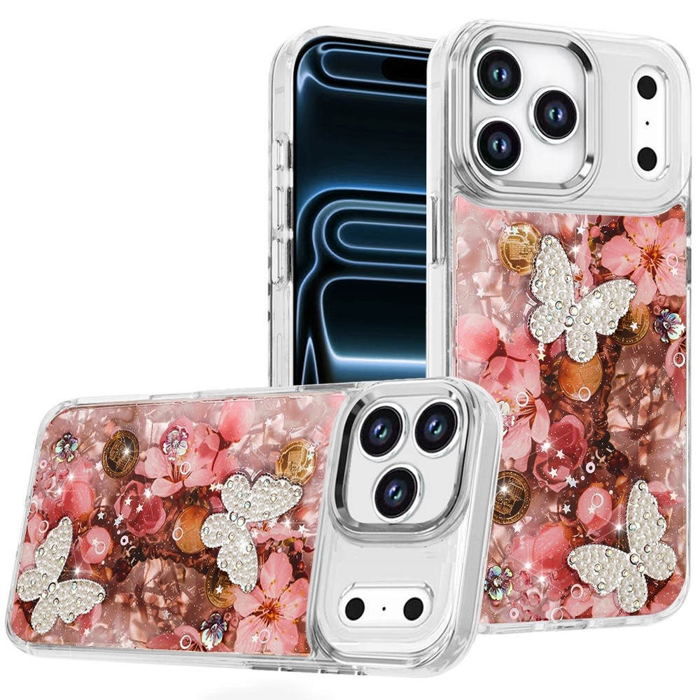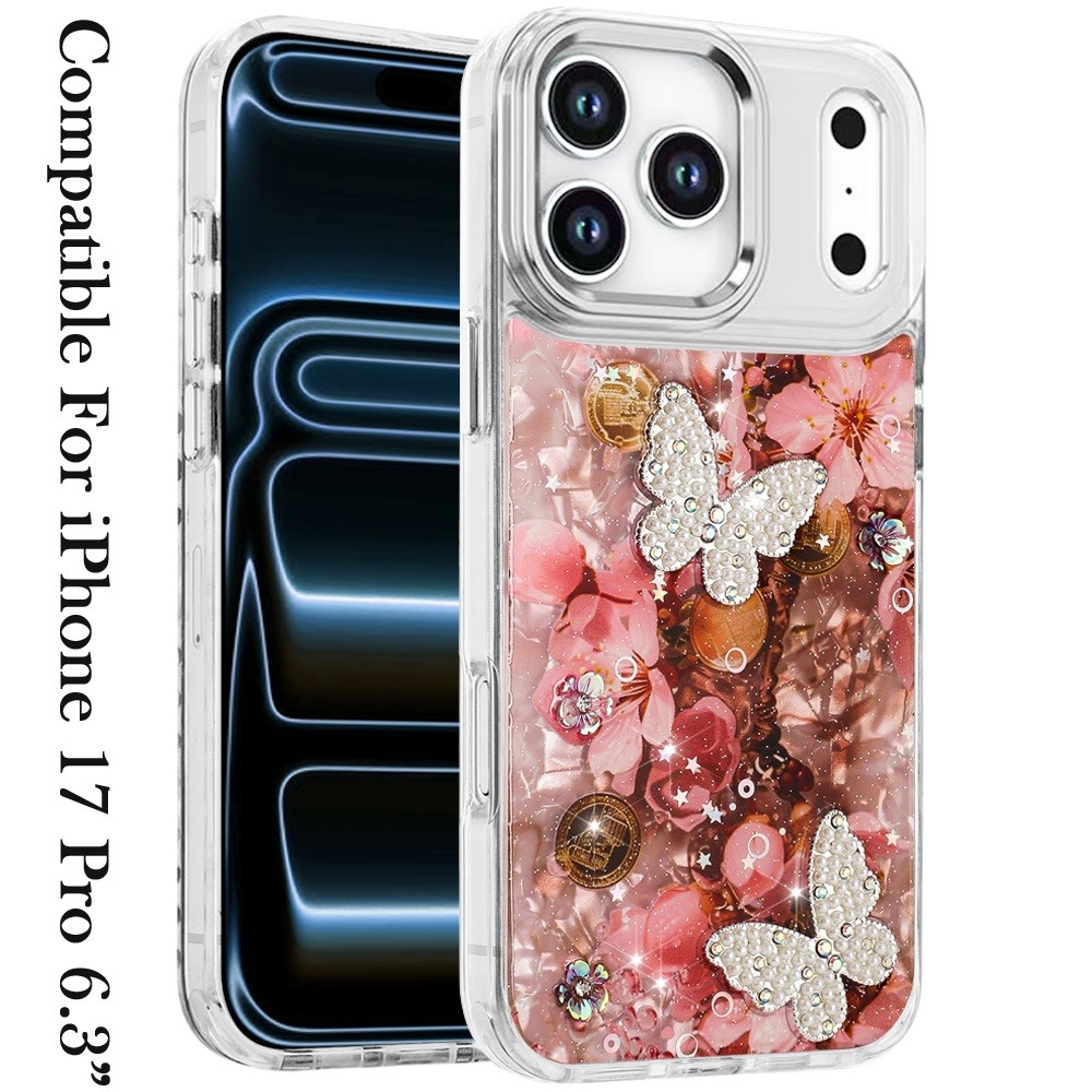 For iPhone 17 Pro Epoxy Glitter Butterfly Ornaments Design HQ Metal Buttons Hybrid - 4