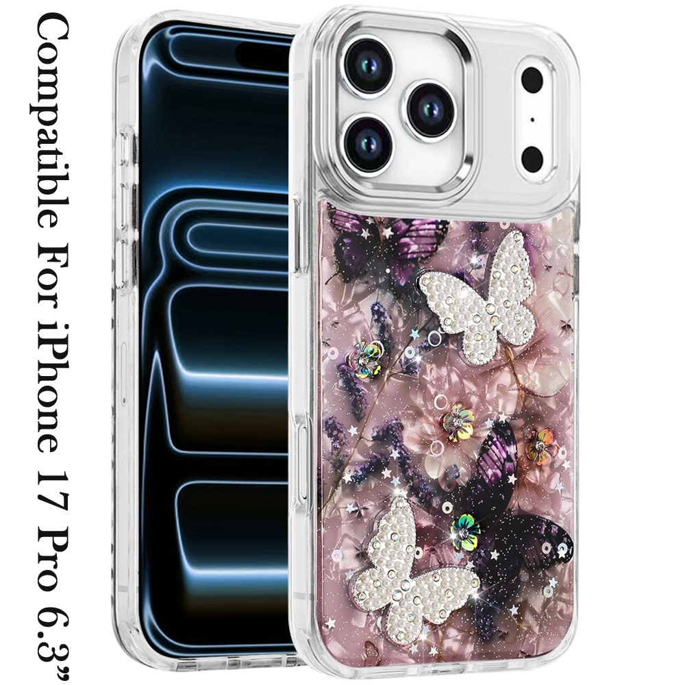 For iPhone 17 Pro Epoxy Glitter Butterfly Ornaments Design HQ Metal Buttons Hybrid - 5