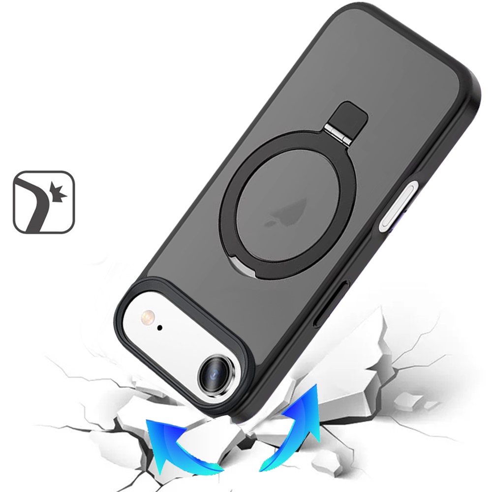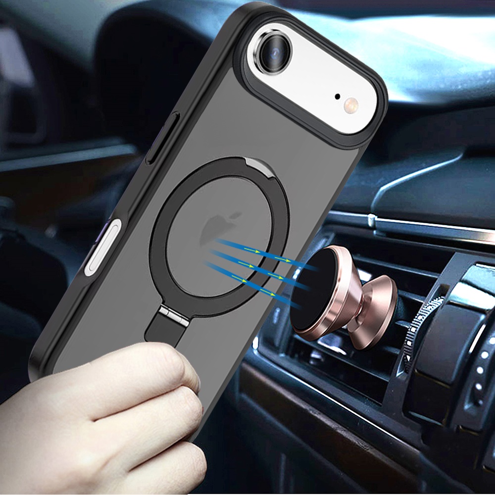 For iPhone 17 Air Magnetic Matching Ring Stand Full Rotation Matte Hybrid - Black
