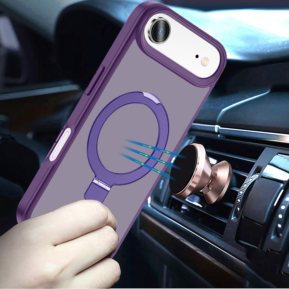 For iPhone 17 Air Magnetic Matching Ring Stand Full Rotation Matte Hybrid - Dark Purple