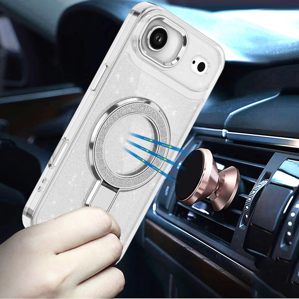 For iPhone 17 Air Transparent Glitter Rotaional Magnetic Ring Stand HQ Hybrid - Clear
