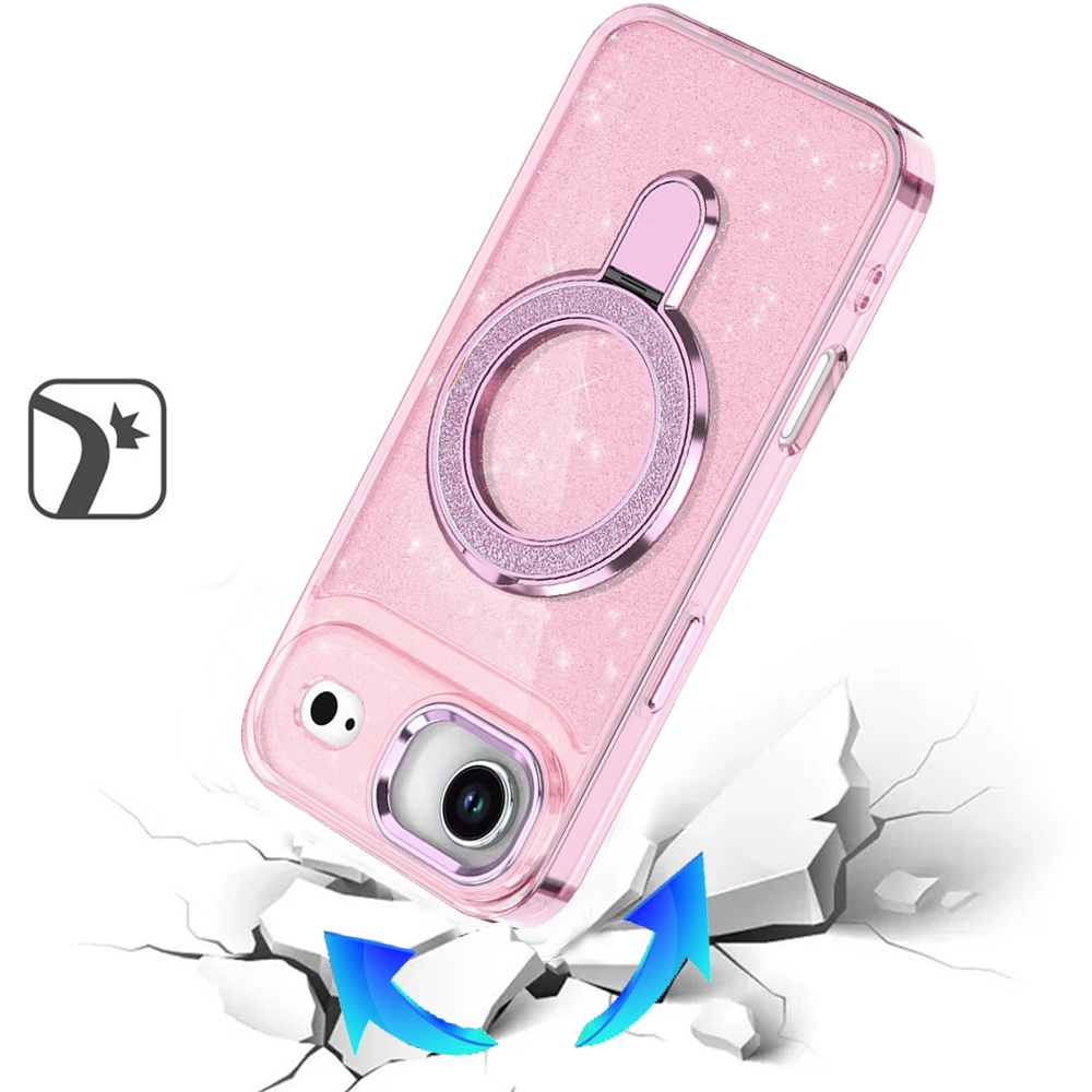 For iPhone 17 Air Transparent Glitter Rotaional Magnetic Ring Stand HQ Hybrid - Light Pink