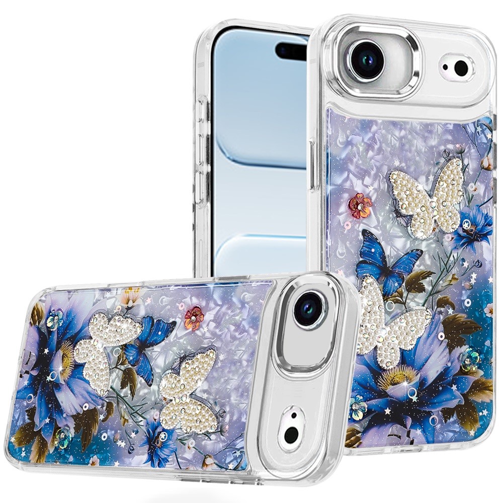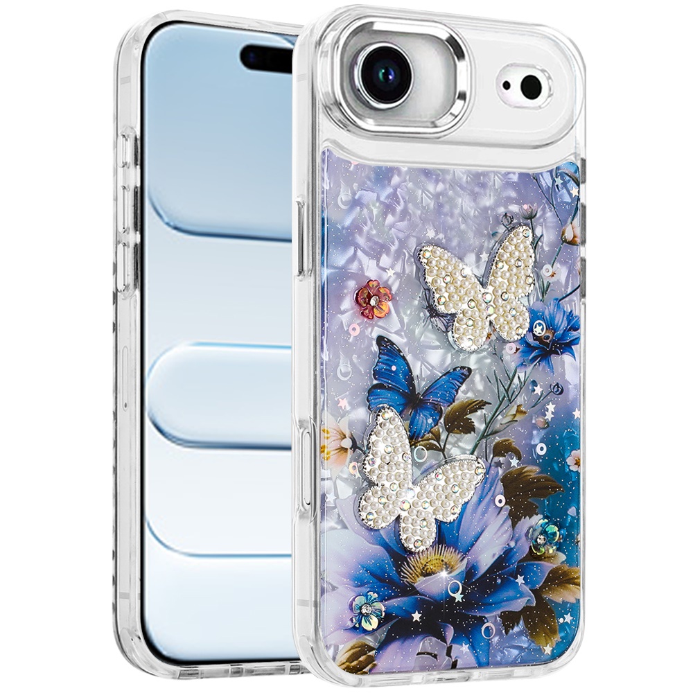 For iPhone 17 Air Epoxy Glitter Butterfly Ornaments Design HQ Metal Buttons Hybrid - 1