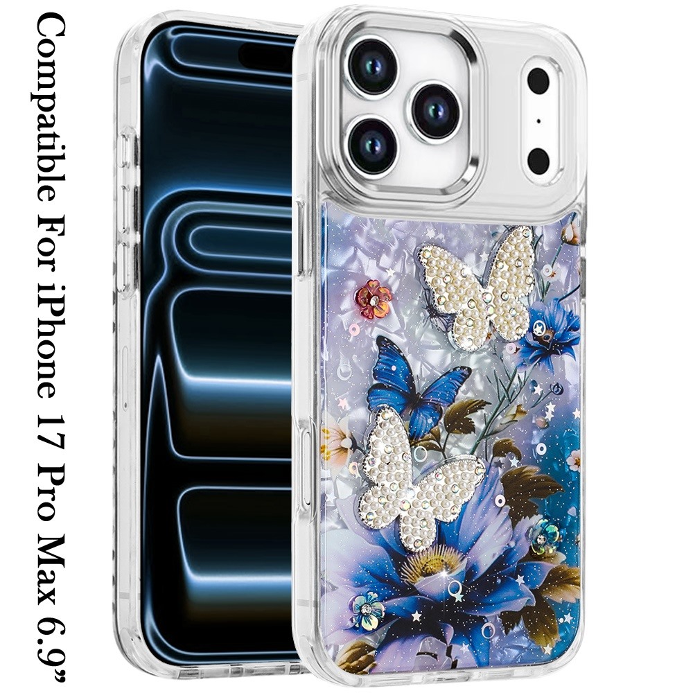 For iPhone 17 Pro Max Epoxy Glitter Butterfly Ornaments Design HQ Metal Buttons Hybrid - 1