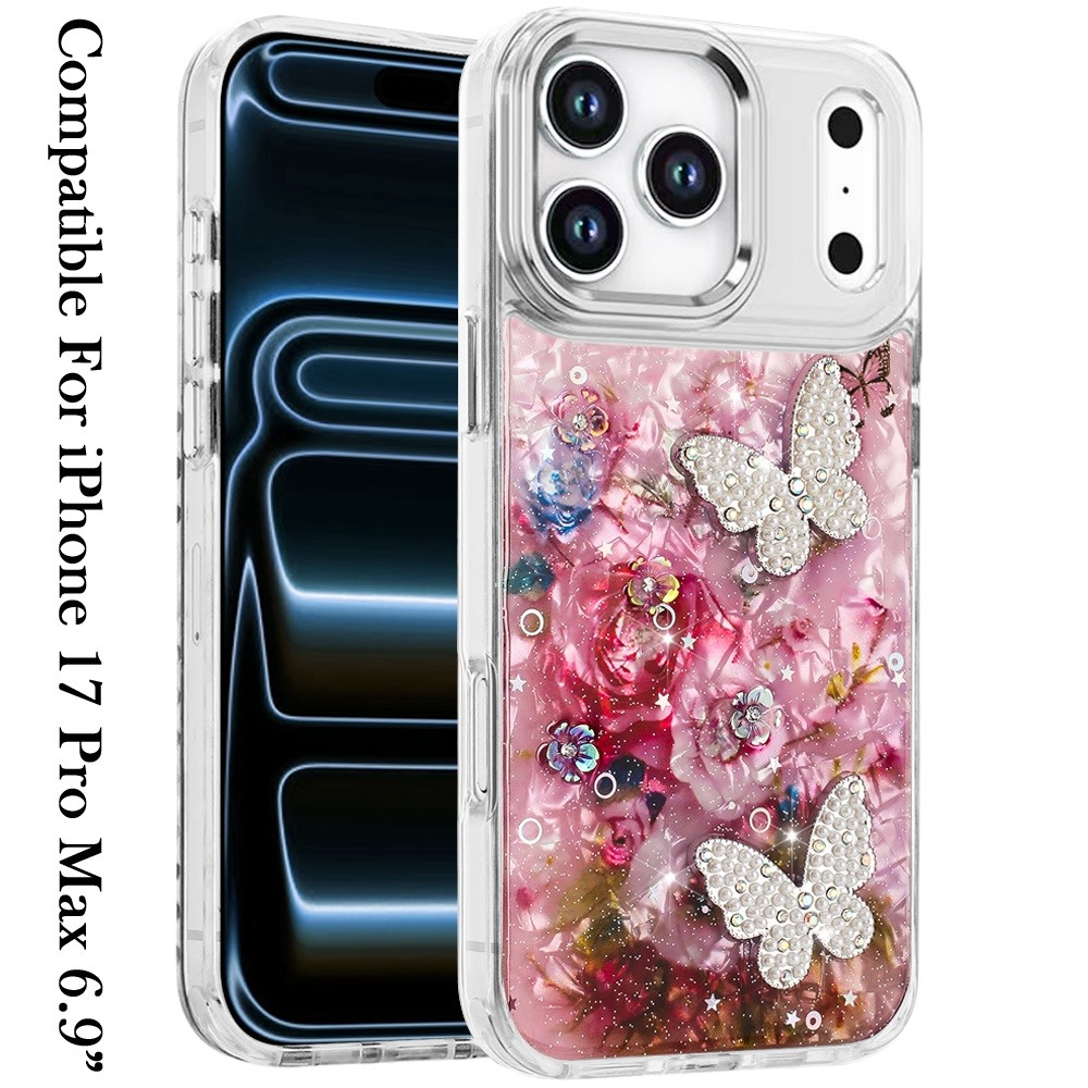 For iPhone 17 Pro Max Epoxy Glitter Butterfly Ornaments Design HQ Metal Buttons Hybrid - 2