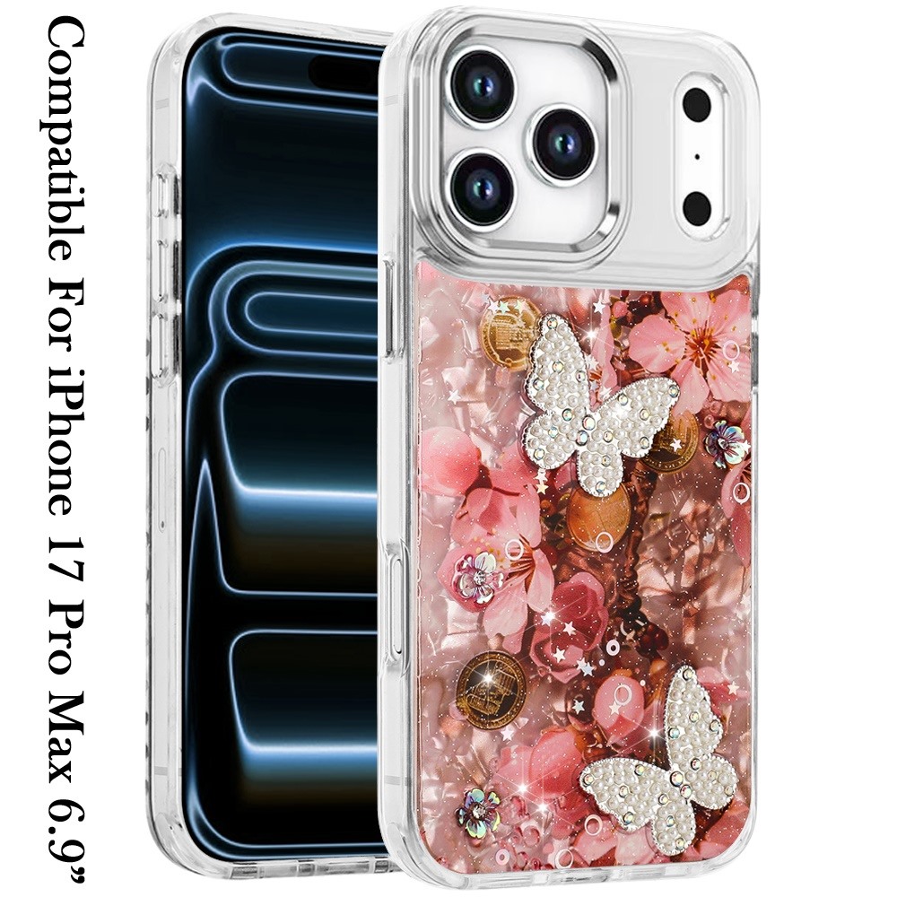 For iPhone 17 Pro Max Epoxy Glitter Butterfly Ornaments Design HQ Metal Buttons Hybrid - 4
