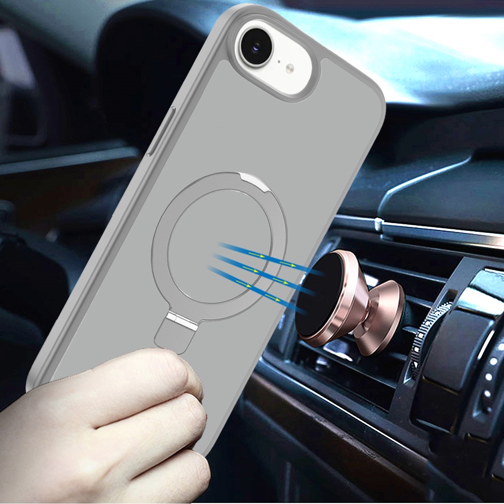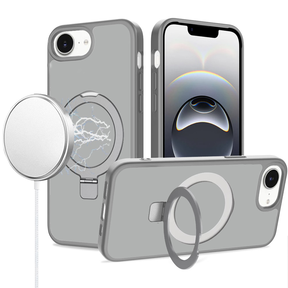 For iPhone 16E (E edition) / SE4 (2025) Magnetic Matching Ring Stand Full Rotation Matte Hybrid - Grey