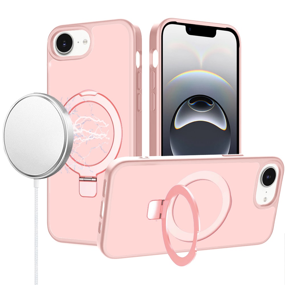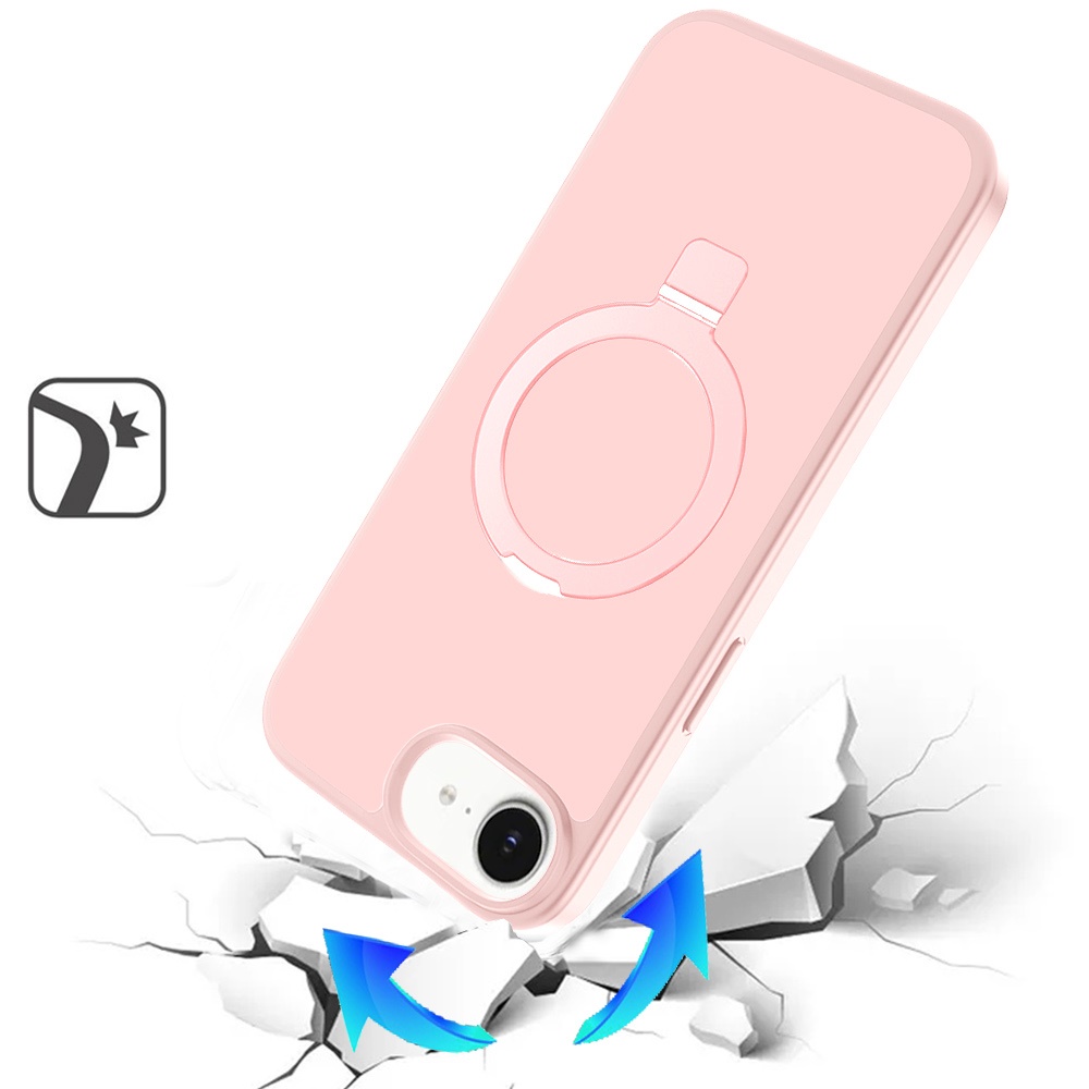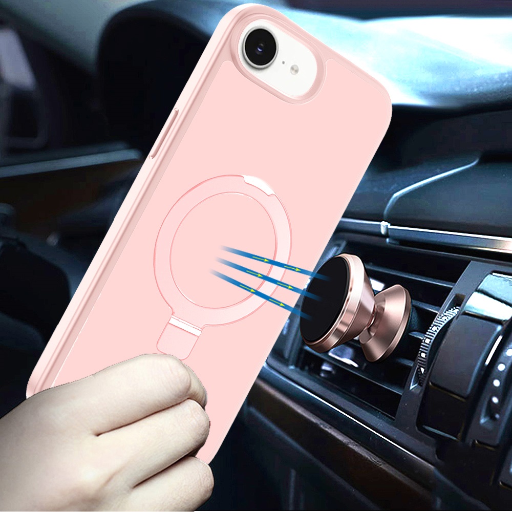 For iPhone 16E (E edition) / SE4 (2025) Magnetic Matching Ring Stand Full Rotation Matte Hybrid - Light Pink