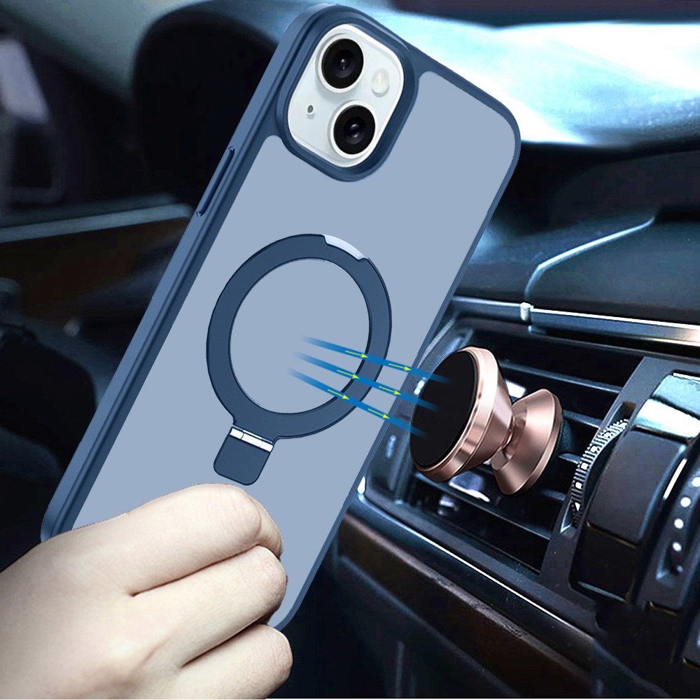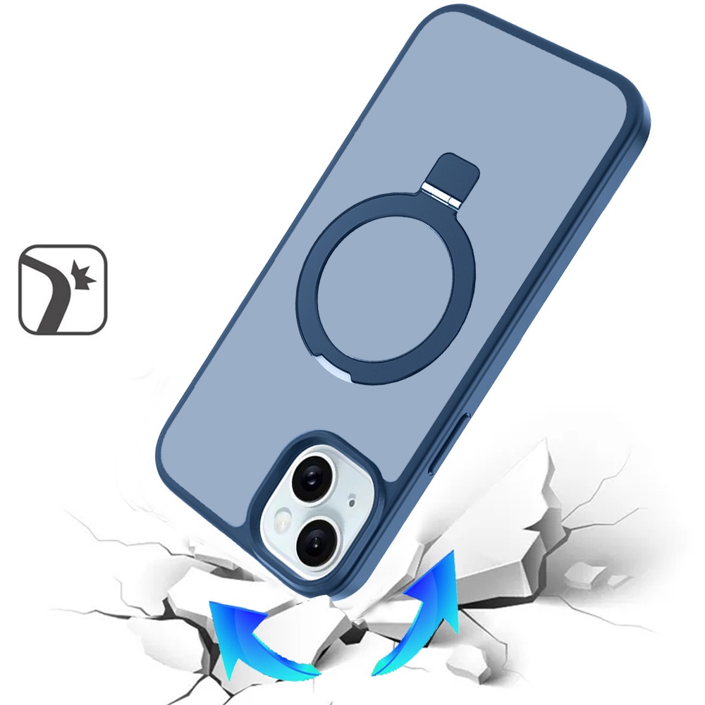 For iPhone 13/14 Magnetic Matching Ring Stand Full Rotation Matte Hybrid - Blue