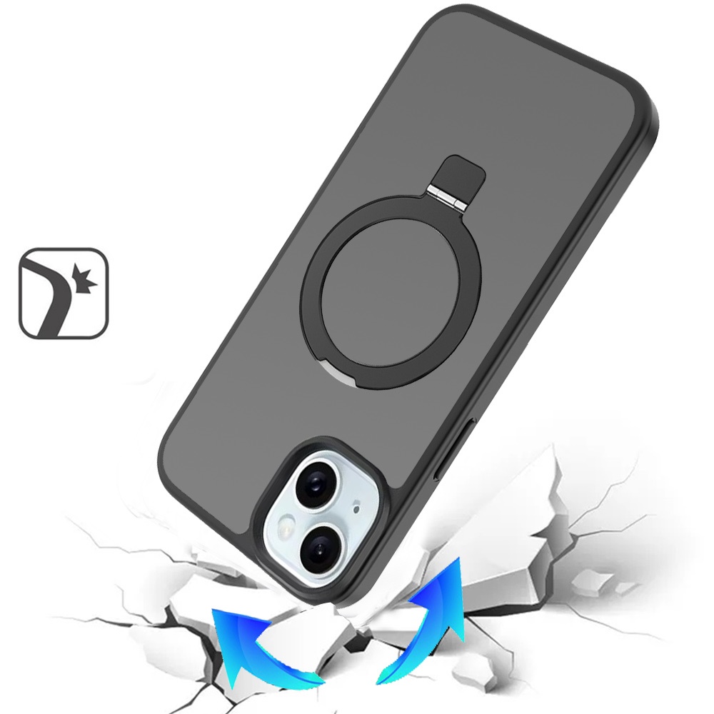For iPhone 15 Magnetic Matching Ring Stand Full Rotation Matte Hybrid - Black