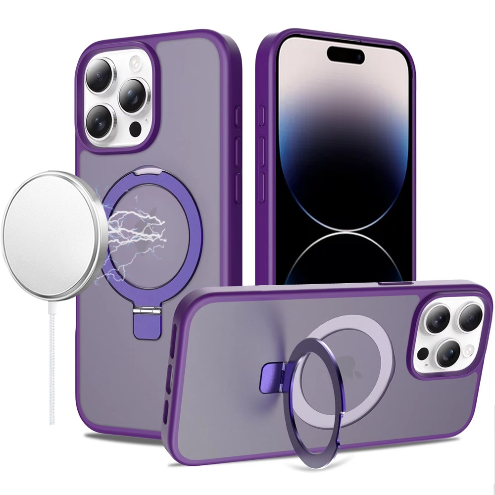 For iPhone 14 PRO MAX 6.7" Magnetic Matching Ring Stand Full Rotation Matte Hybrid - Dark Purple