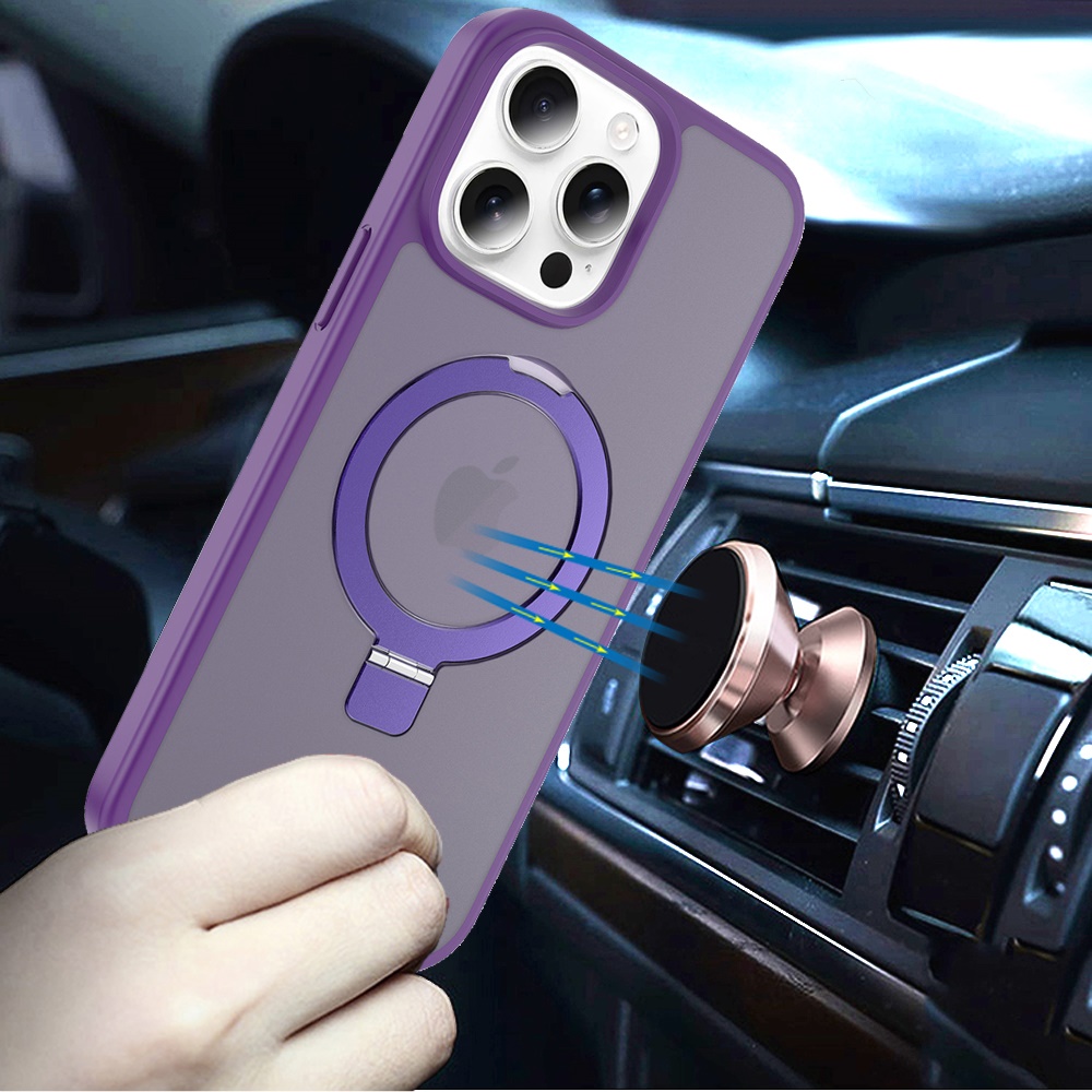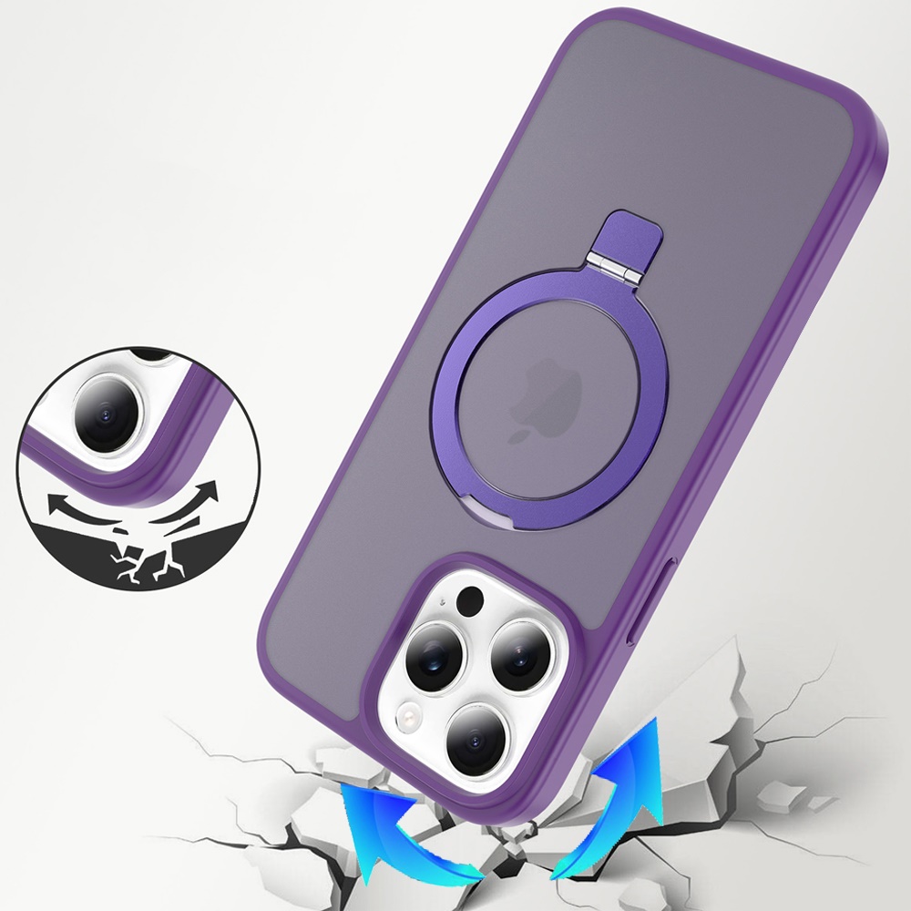 For iPhone 13 Pro Max Magnetic Matching Ring Stand Full Rotation Matte Hybrid - Dark Purple