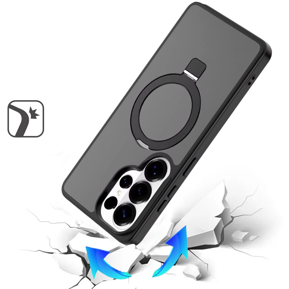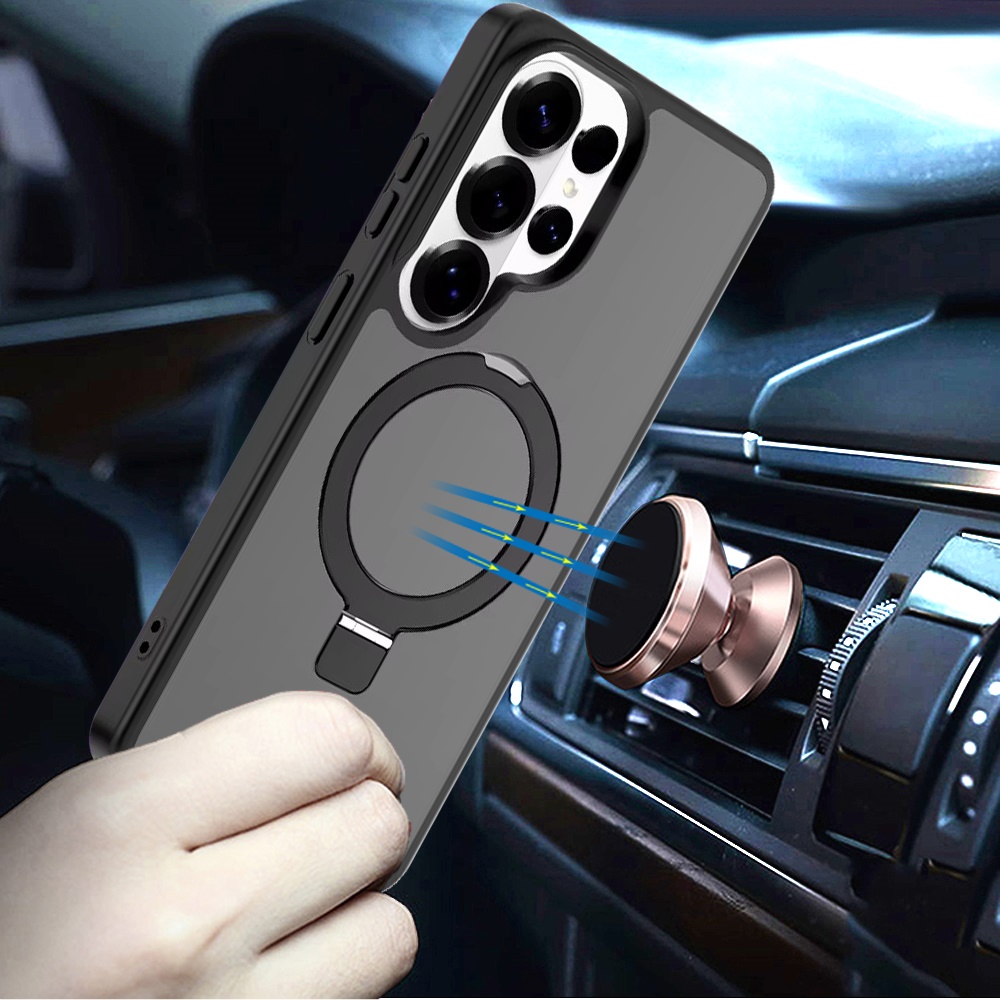 For Samsung s25 Ultra Magnetic Matching Ring Stand Full Rotation Matte Hybrid - Black