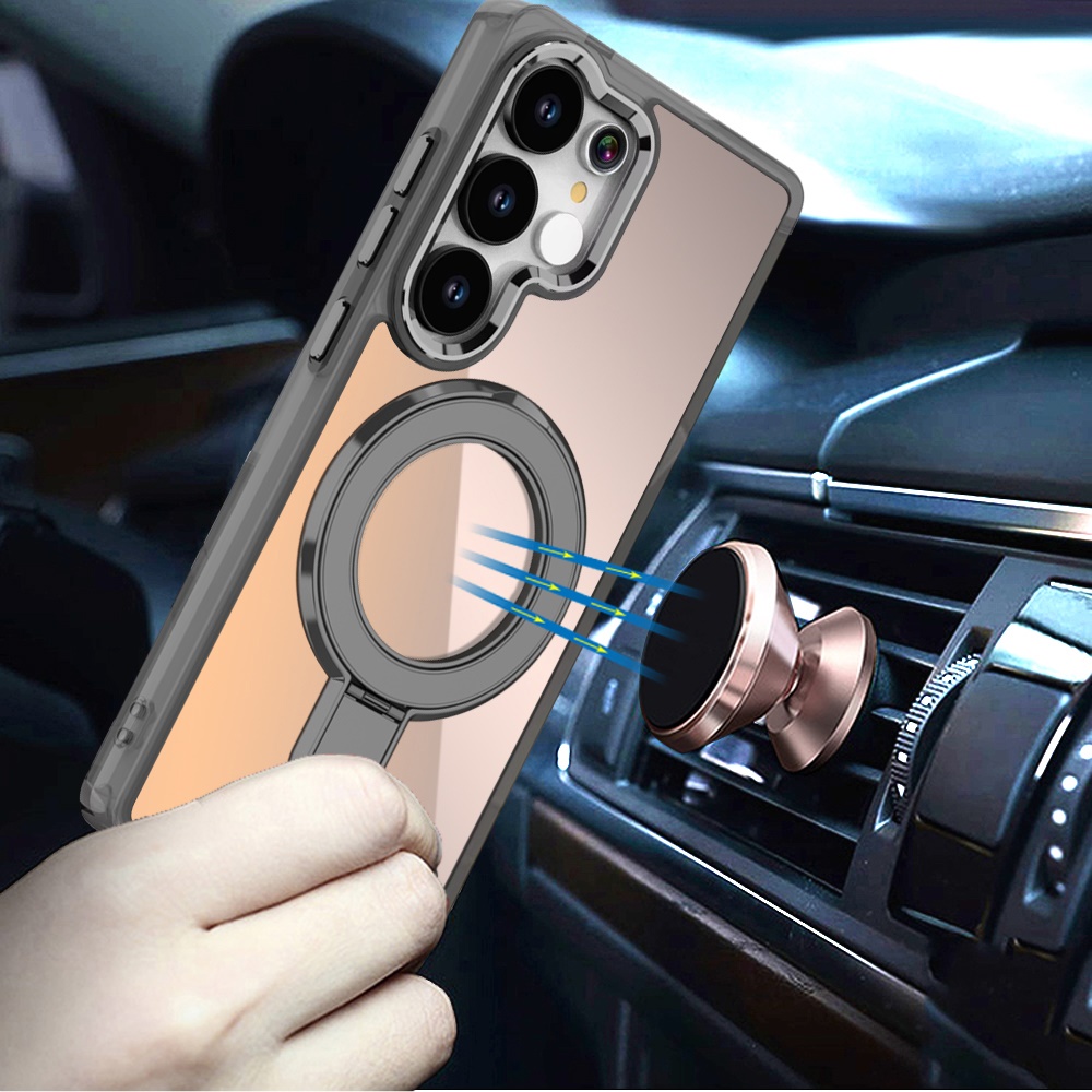 For Samsung s25 Ultra CHROME HQ Rotational Magnetic Ring Hybrid - Black