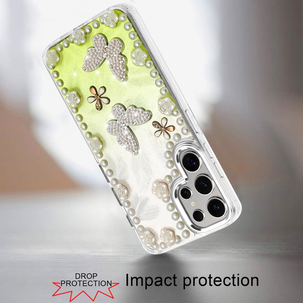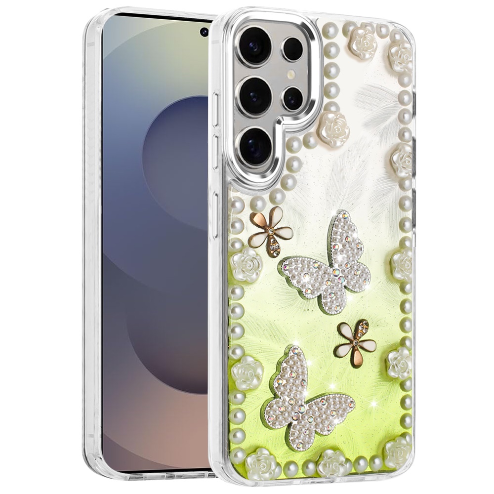 For Samsung s25 Ultra Pearls Epoxy Glitter Ornaments Design Chrome Edged Case - 1