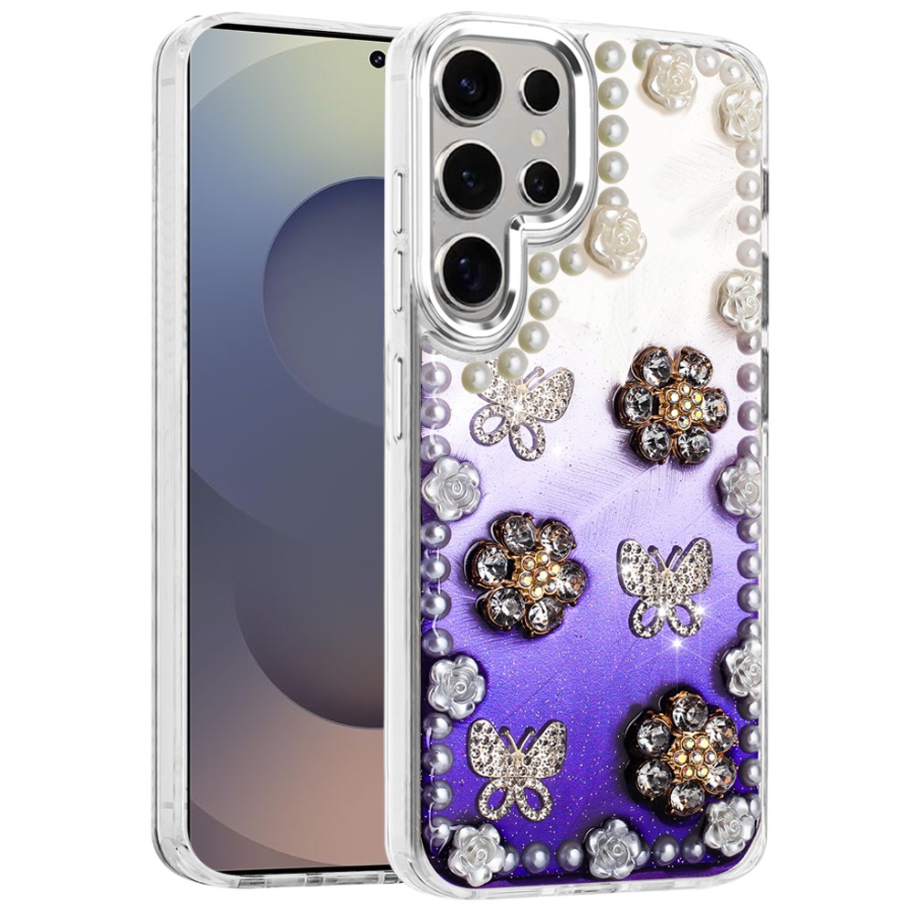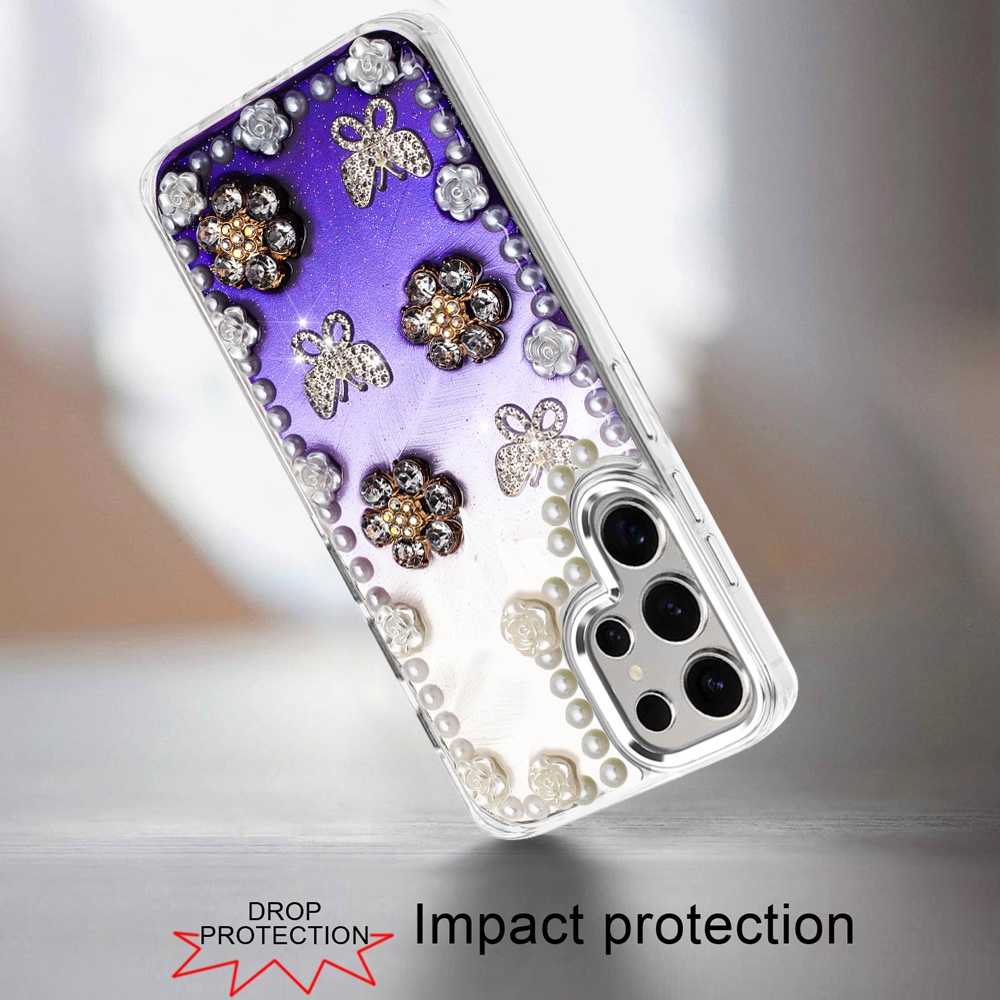 For Samsung s25 Ultra Pearls Epoxy Glitter Ornaments Design Chrome Edged Case - 3