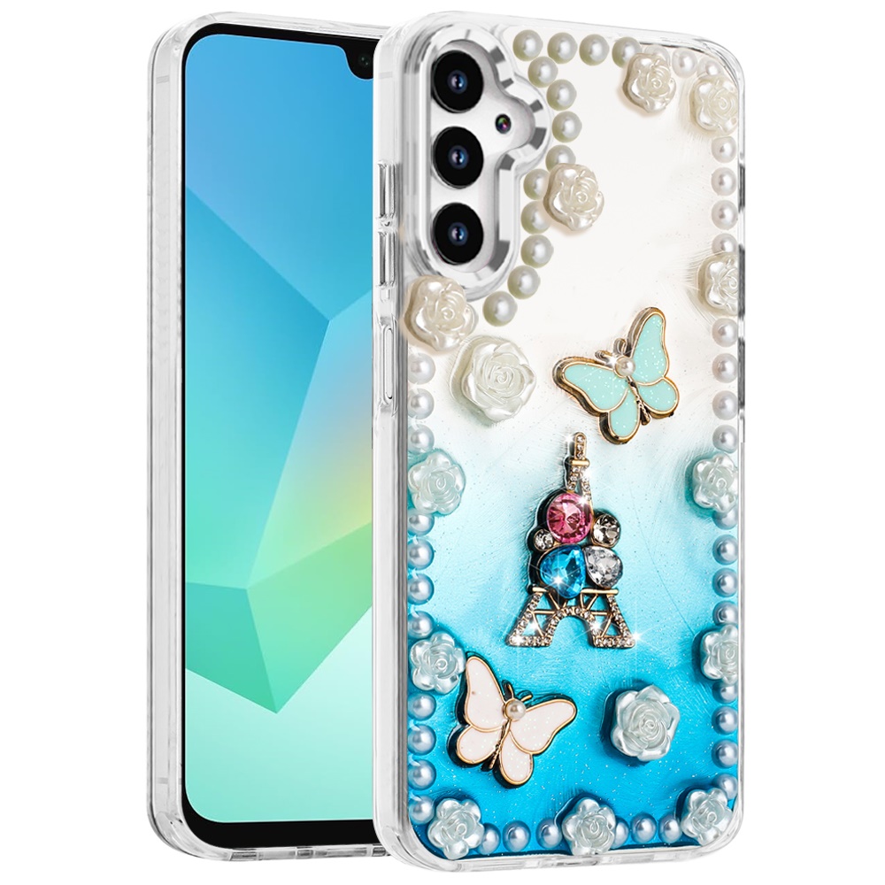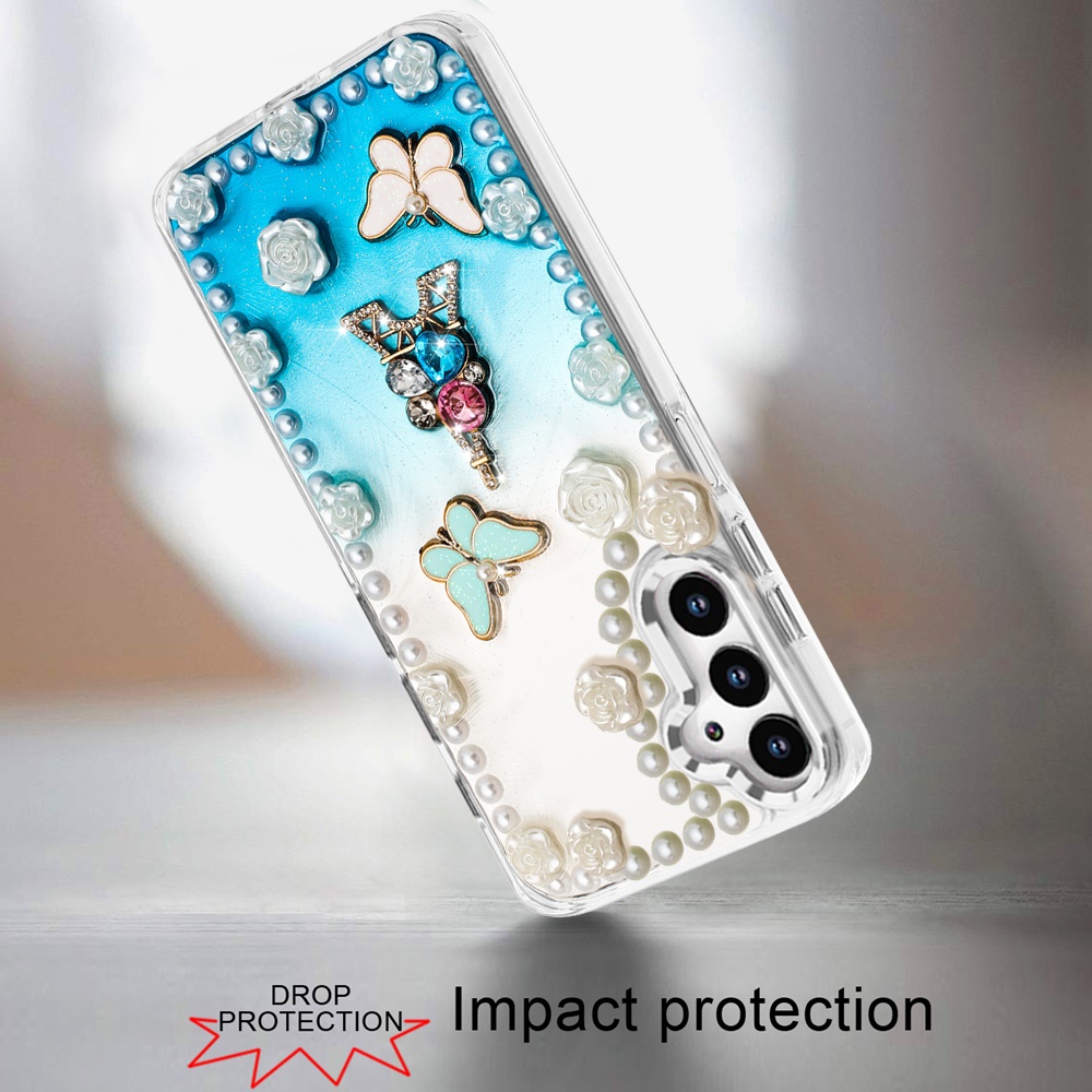 For Samsung A16 5G Pearls Epoxy Glitter Ornaments Design Chrome Edged Case - 4