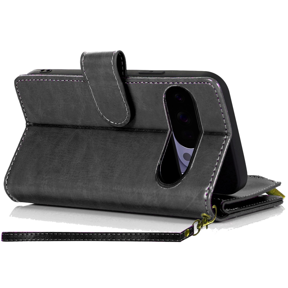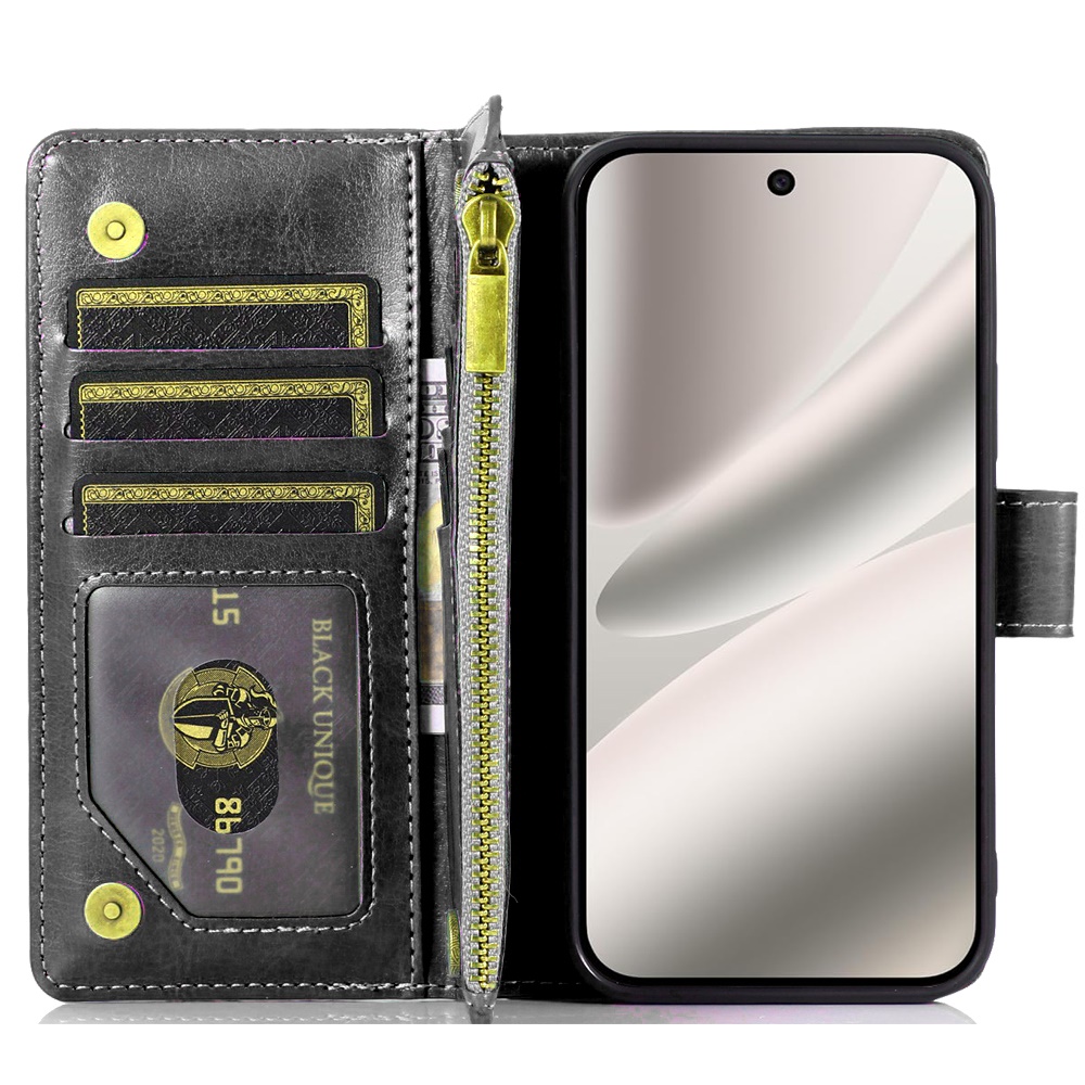 For Google Pixel 10 Pro XL Jewel Wallet Design with Stitched PU Leather ID Card Money Holder Zipper Case - Black