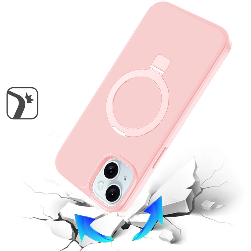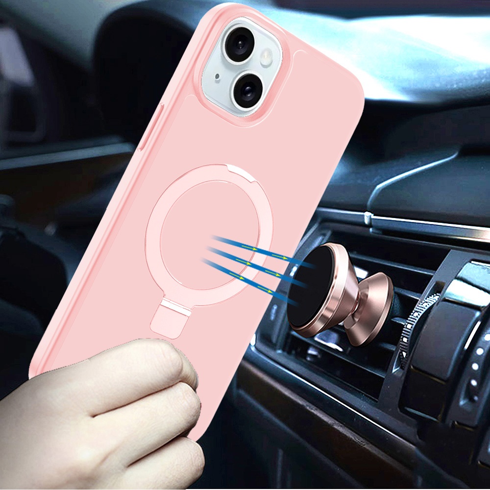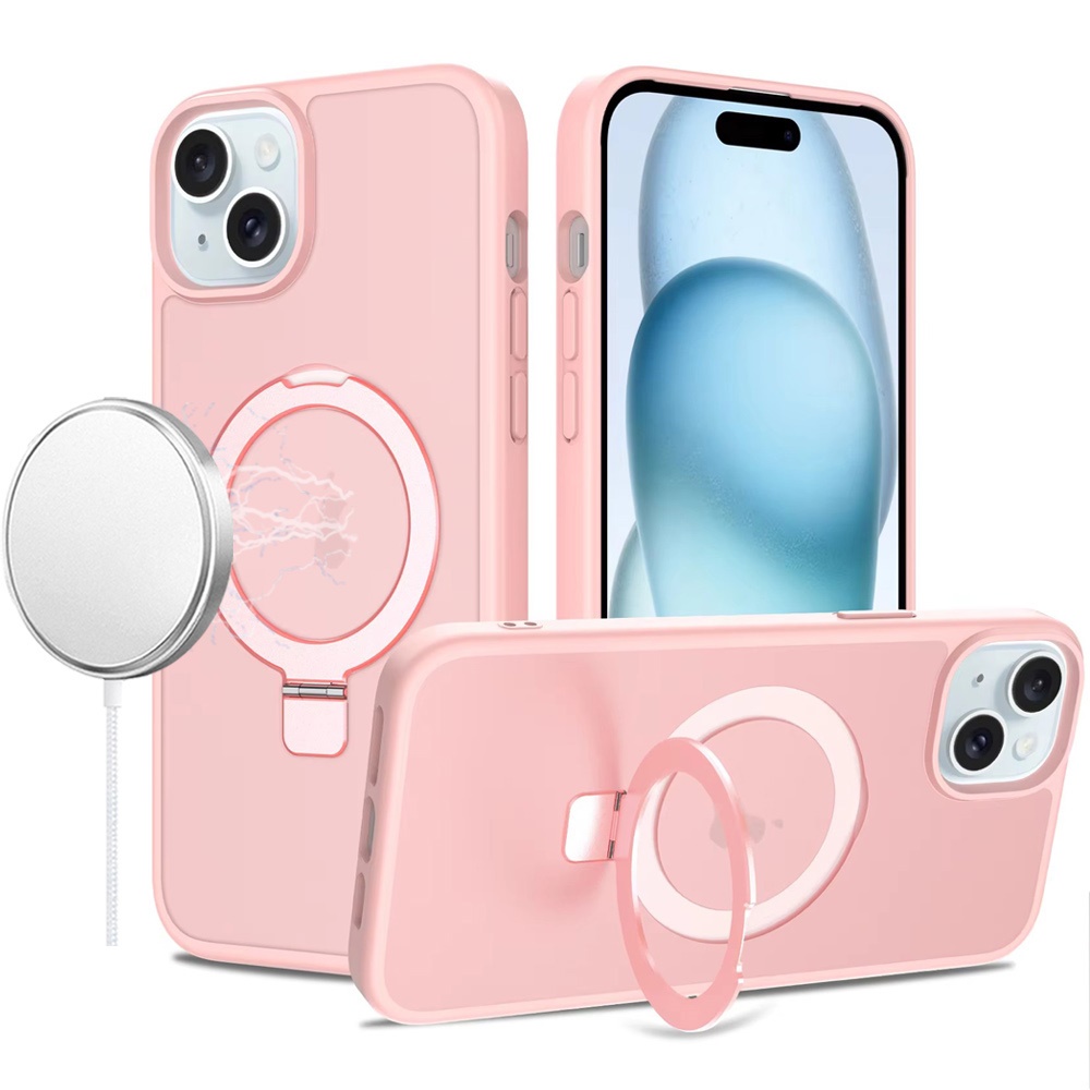 For iPhone 15 Plus/iPhone 14 Plus Magnetic Matching Ring Stand Full Rotation Matte Hybrid - Light Pink