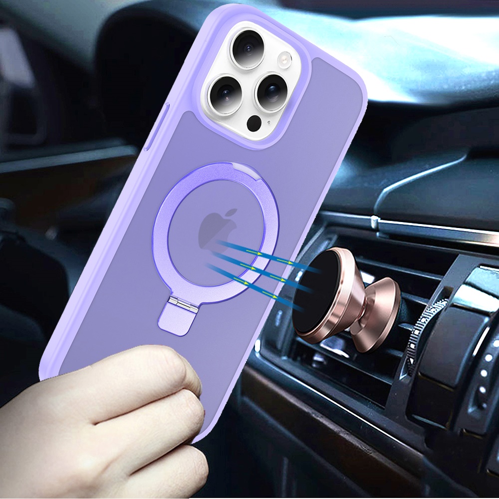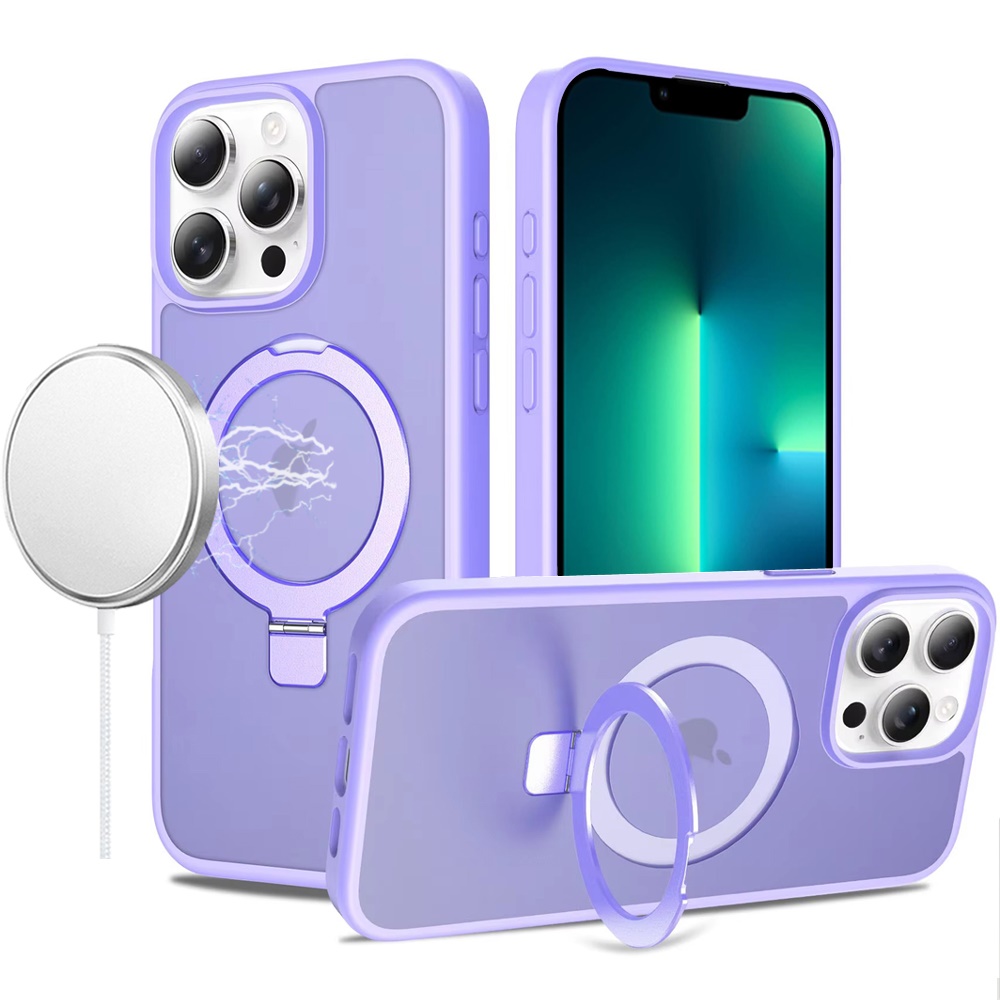 For iPhone 13 Pro Magnetic Matching Ring Stand Full Rotation Matte Hybrid - Light Purple