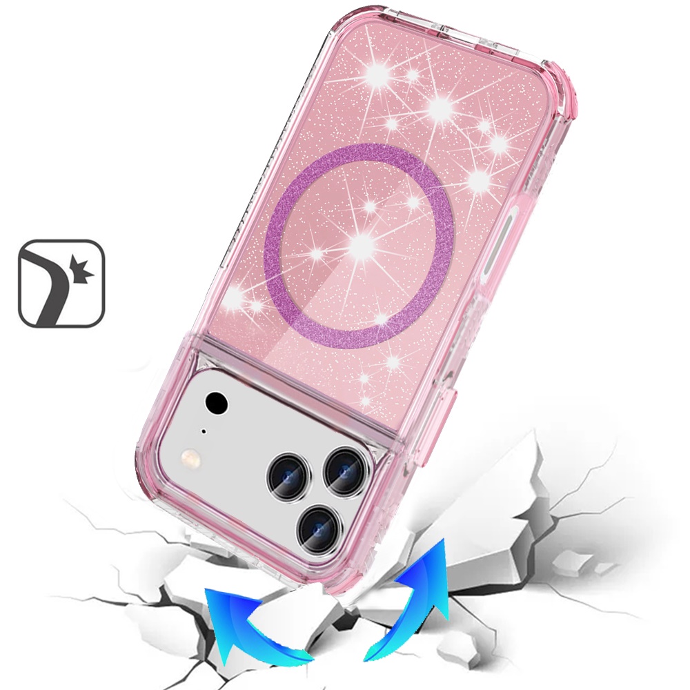 For iPhone 17 Pro Max Magnetic Ring Glitter 3in1 Hybrid Case Cover - Pink